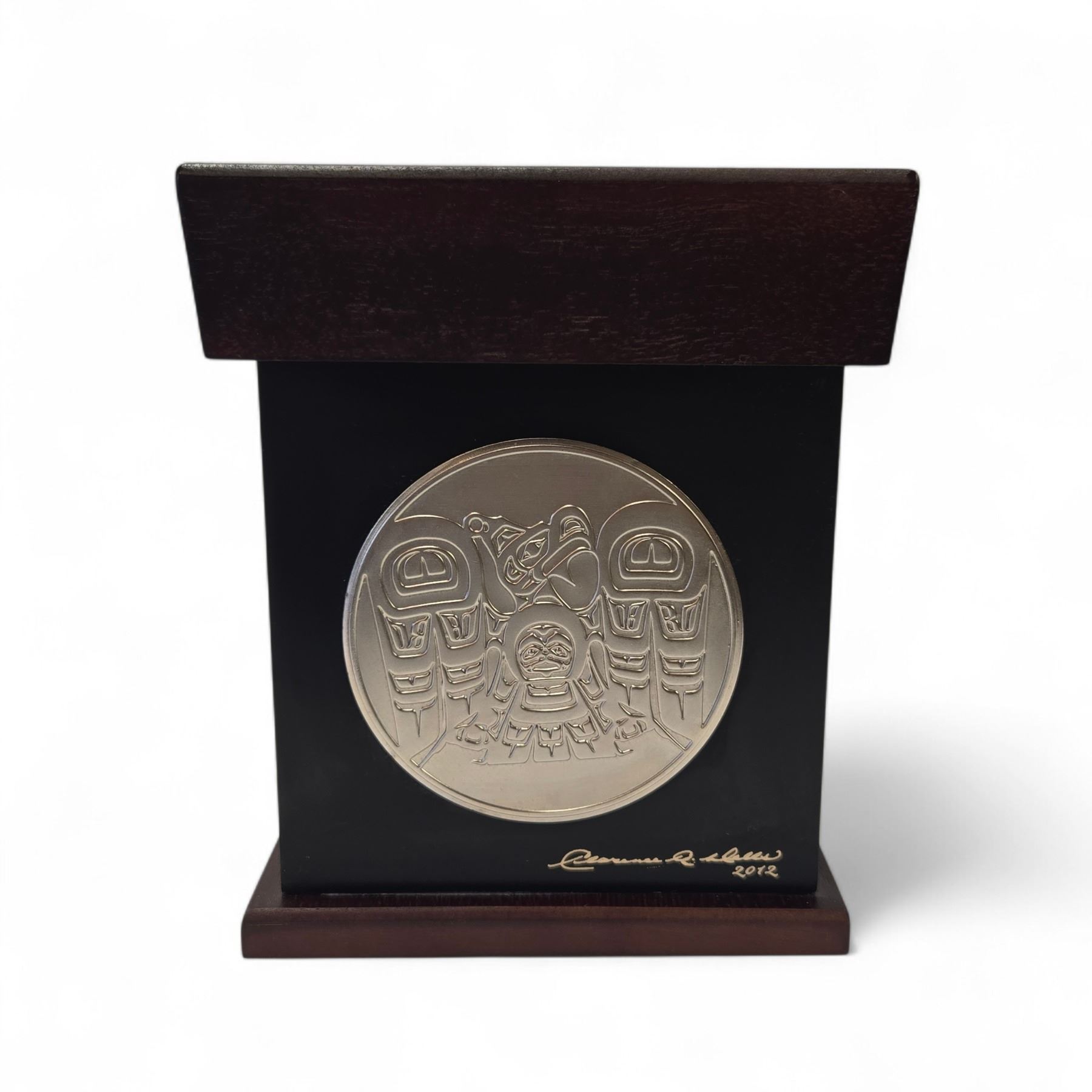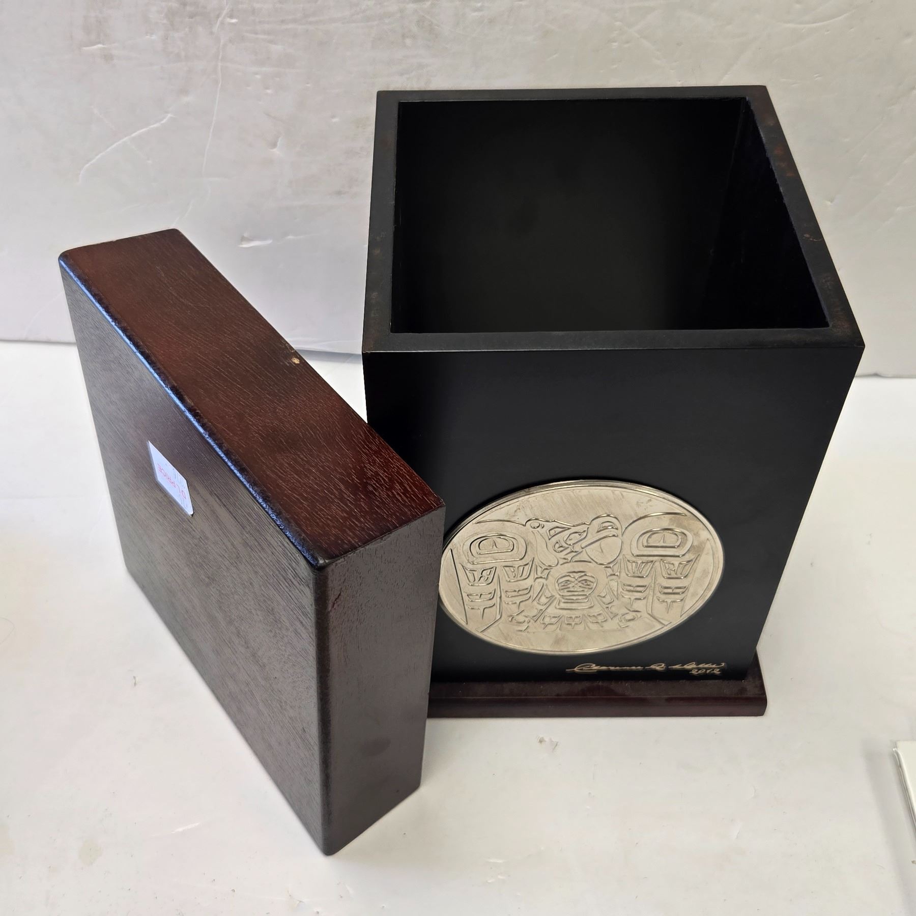 Lot 61 2012 Clarence Wells West Coast Design Keepsake Box with Metal Plaque (7" X 7" X 8" Tall)