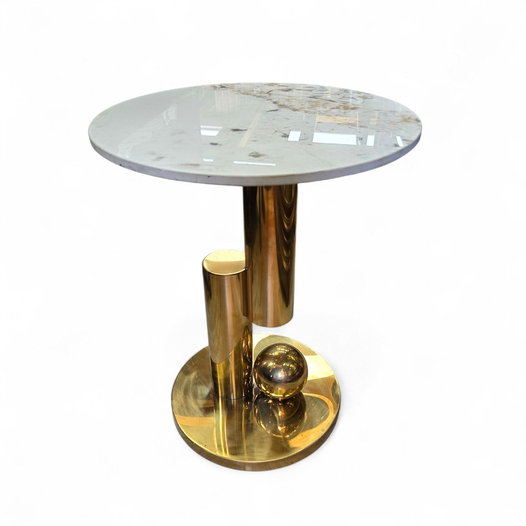 Modern Marble Topped Brass Side Table ( "19 Tall X 16" Diameter)