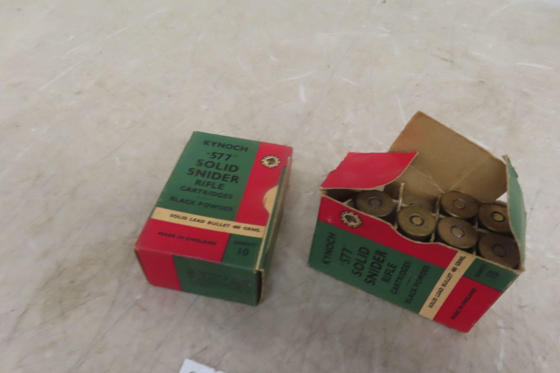Kynoch .577 Ammo – 16 Rounds and 2 Extra Brass Cases for Snider Rifle