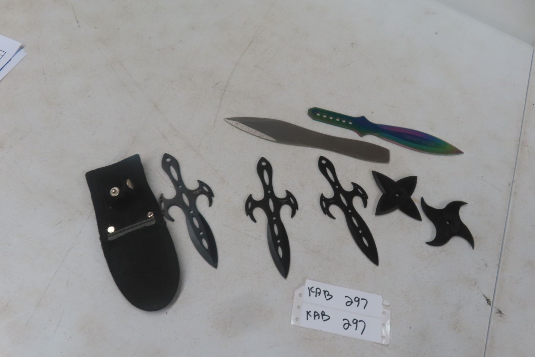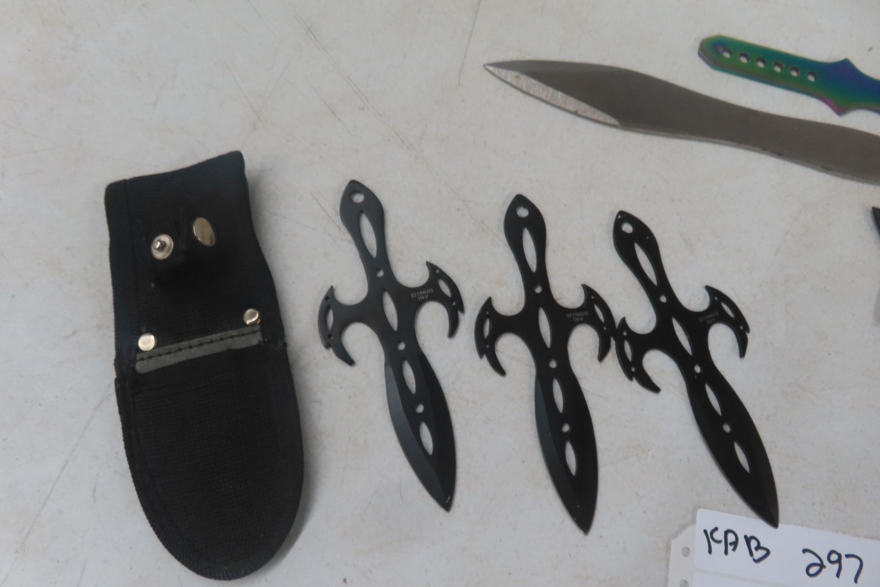 Lot 297 Throwing Knives Set of 3 with Sheath – 2 Singles and 2 Rubber Throwing Stars