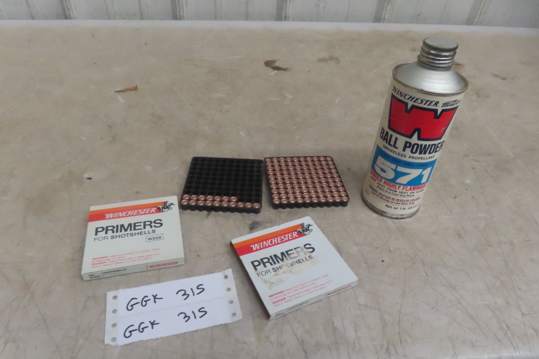 Lot 315 Shot Shell Primers – Qty 117, Full Can Winchester Ball Powder 571 (No Shipping – Explosive)