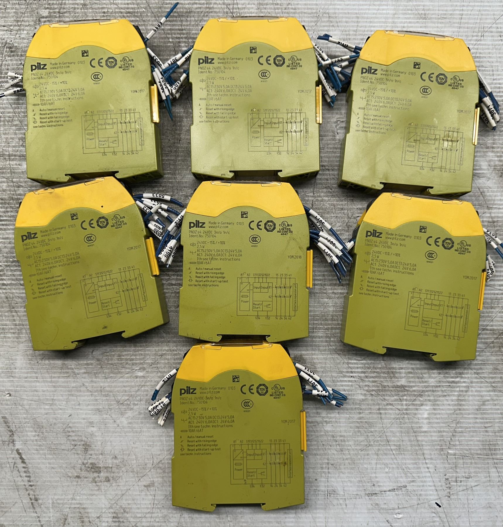 Lot of (7) Pilz #750104 / PNOZ s4 24VDC 3n/o.1n/c Safety Relays