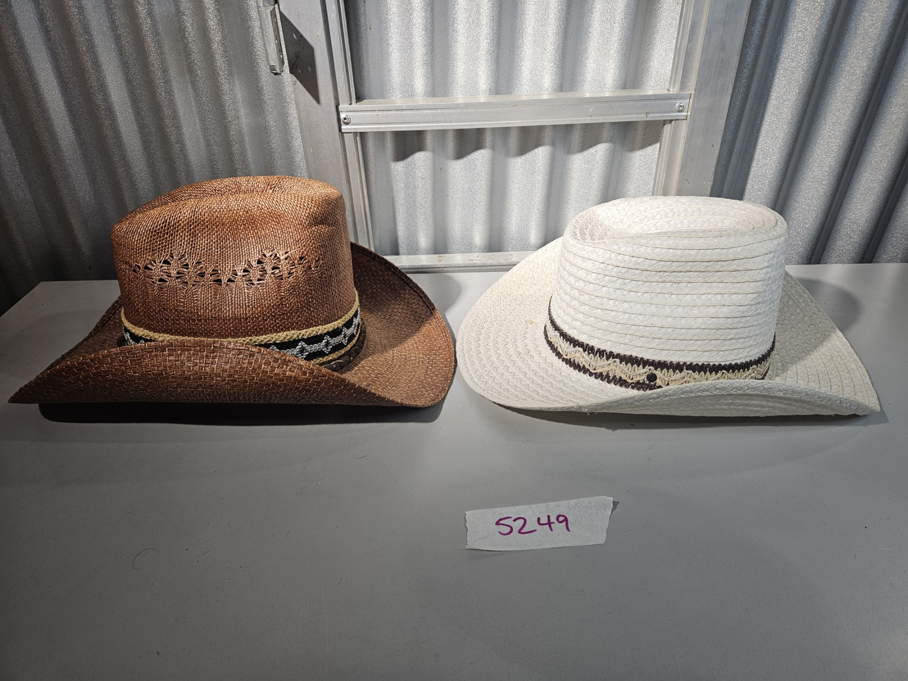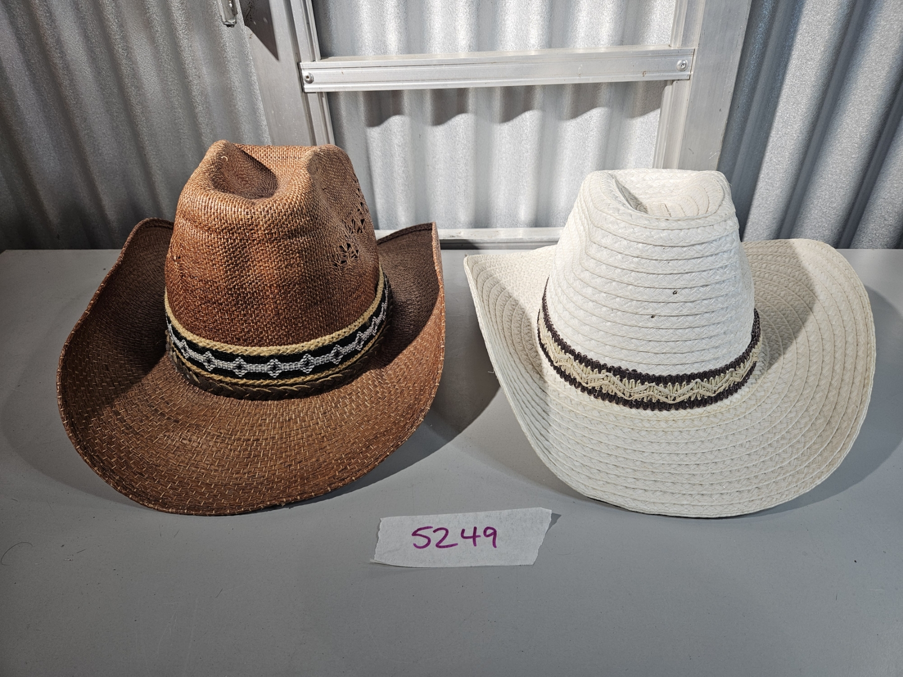 Lot 5249 Brown & White Straw Coyboy Hats - Size Med