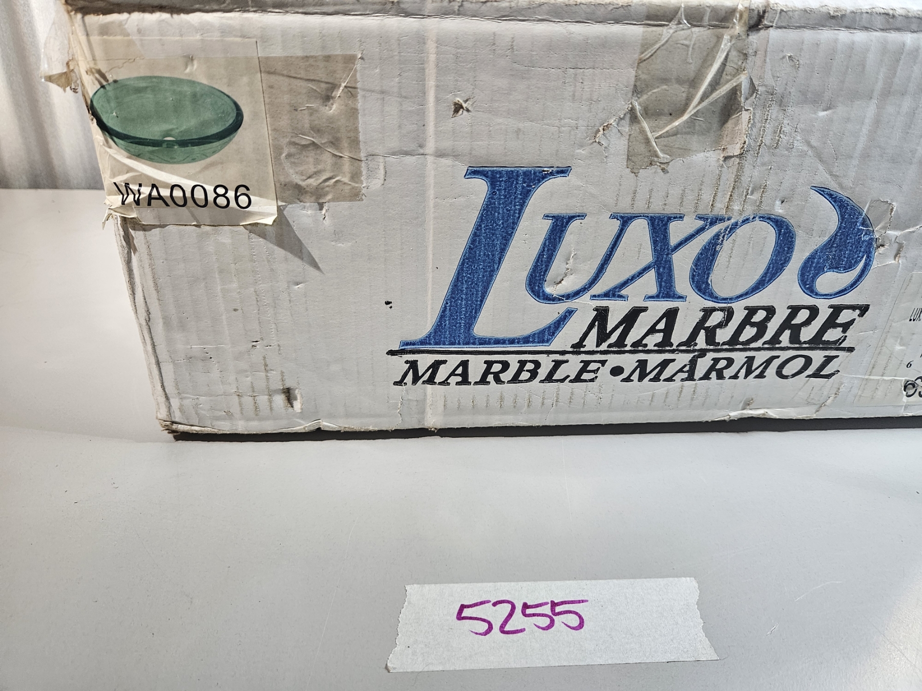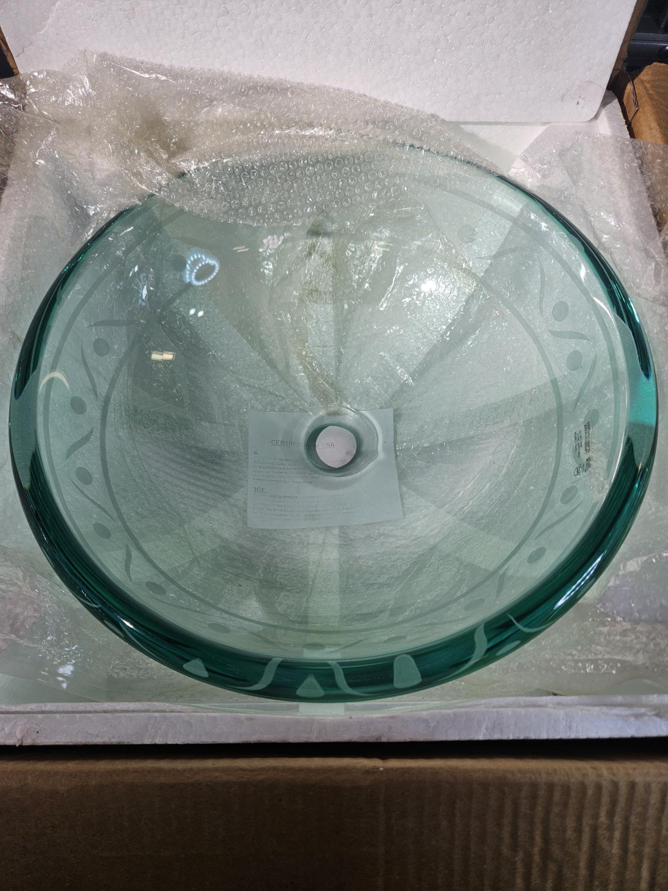 Lot 5255 Luxo Marbre Bathroom Vessel Sink - Green Tempered Glass