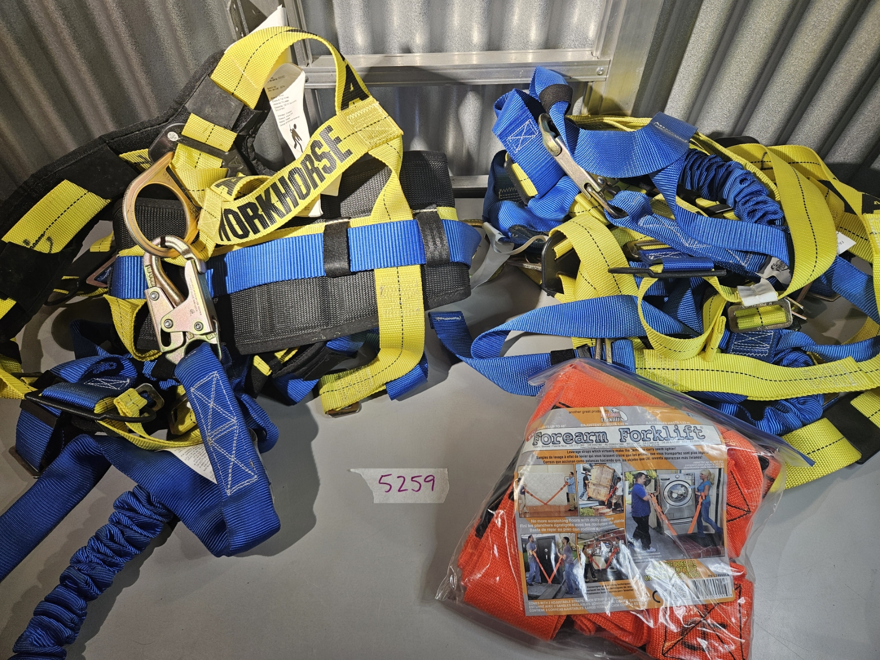 Lot 5259 4 Workhorse Full Body Harness + 2 Forearm Forklift Lifting Straps