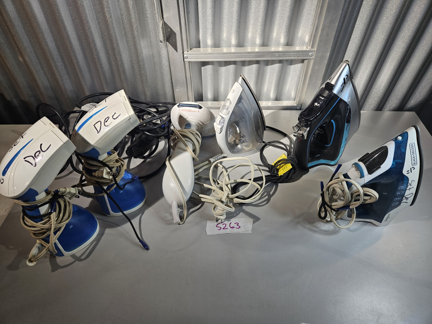 Lot 5263 3 Handheld Garment Steamers + 3 Electric Steam Irons
