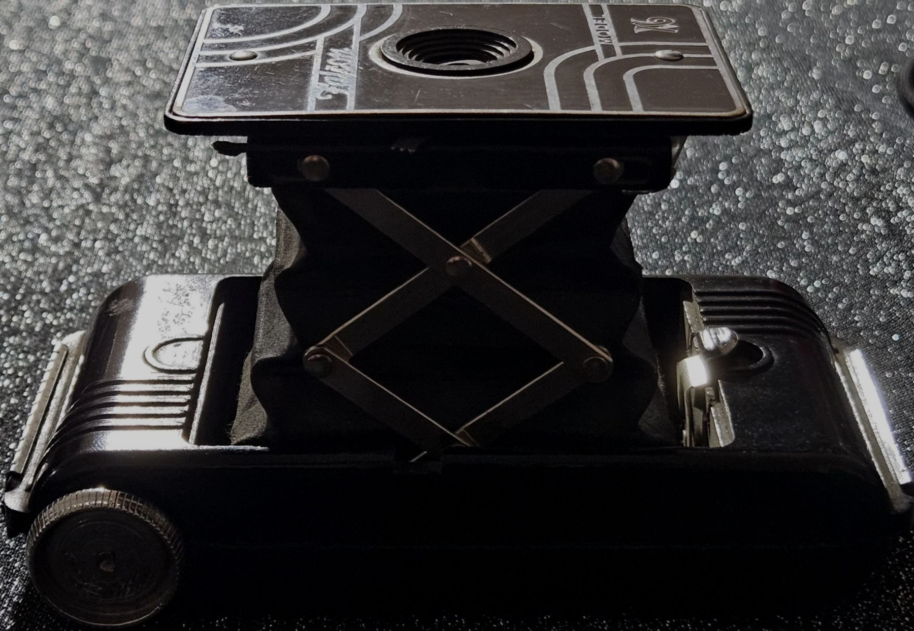 Camera was produced between the 1930s and 1940s, in excellent condition with strut-fold in complete working function.