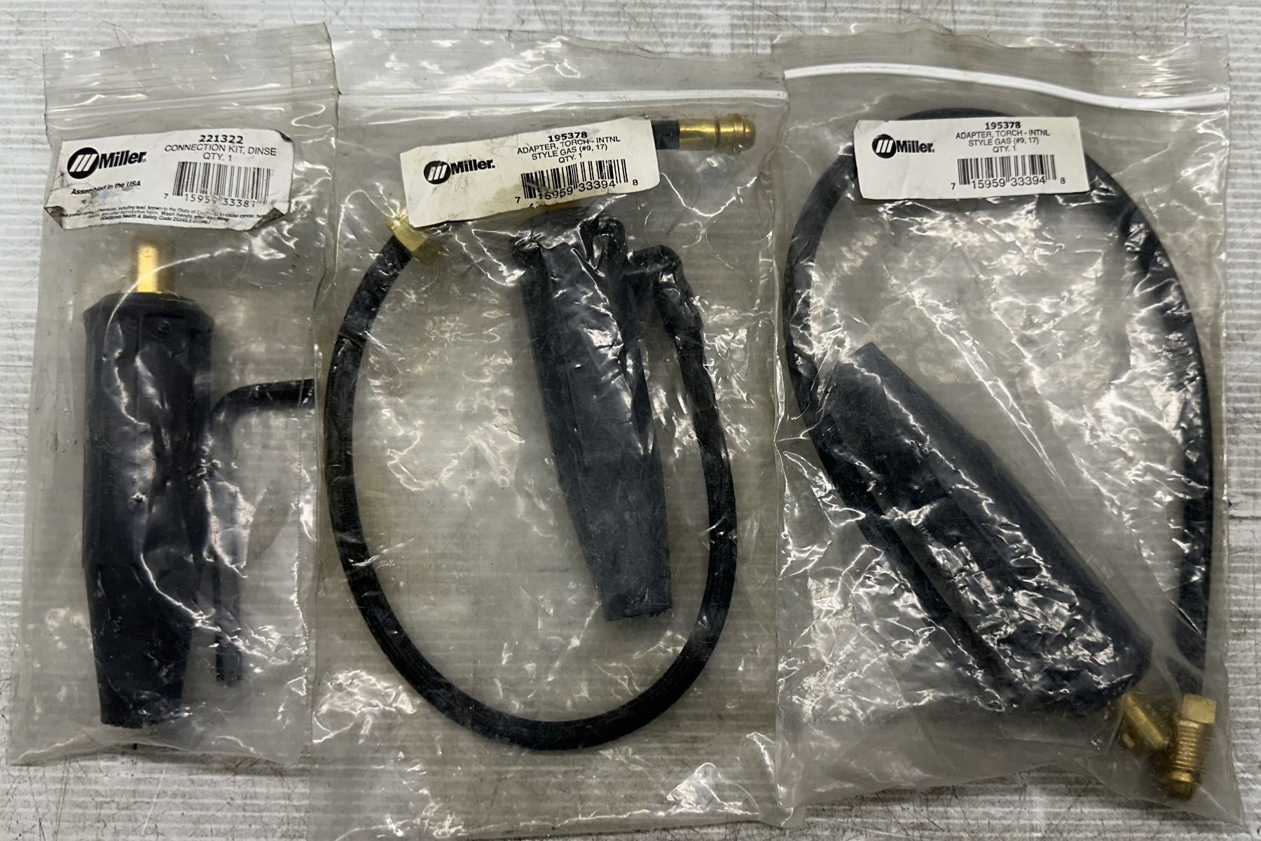 Lot of (3) Miller 2-#195378 Torch-Intnl Adapters & 1-#221322 Connection Kit