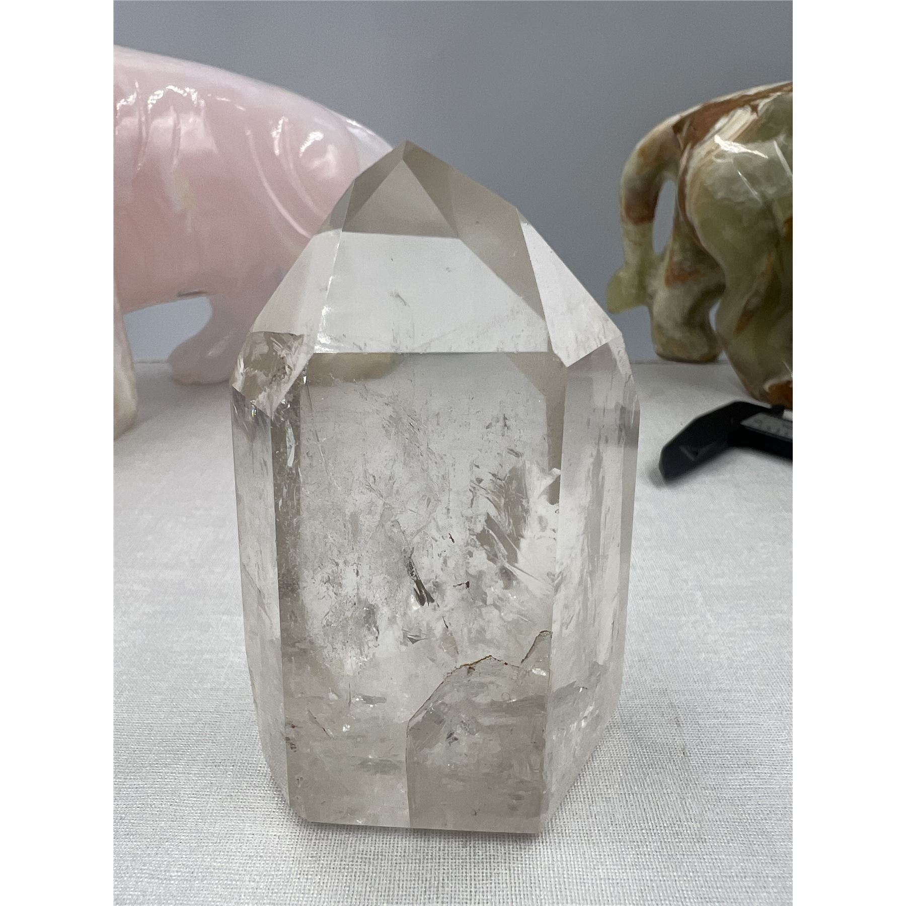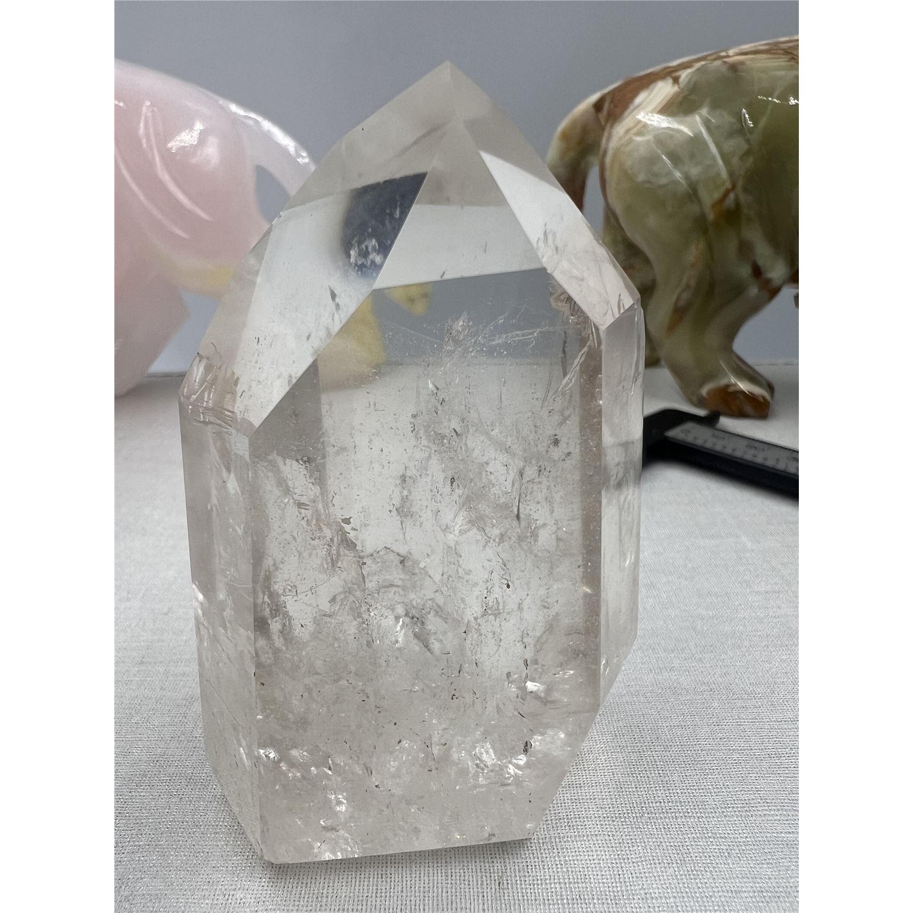 3.5 X 2.3 INCH CLEAR QUARTZ TOWER WITH AURA