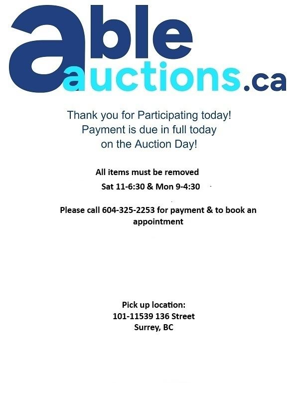 You will need to sign-up and be approved in order to Watch/Bid online!!PLEASE NOTE: Items Subject to Additions & Deletions - Auction Date & Times May Change.