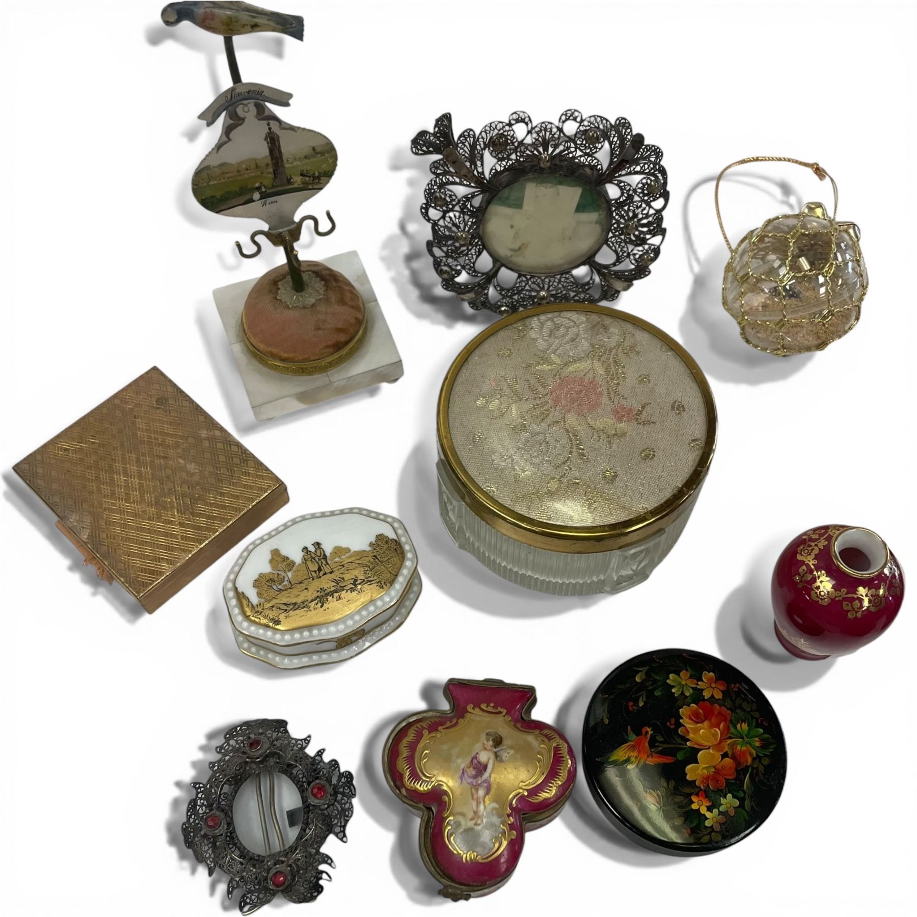 Group of Vintage Leather Compacts, Glove Stretcher, Trinket Boxes and more