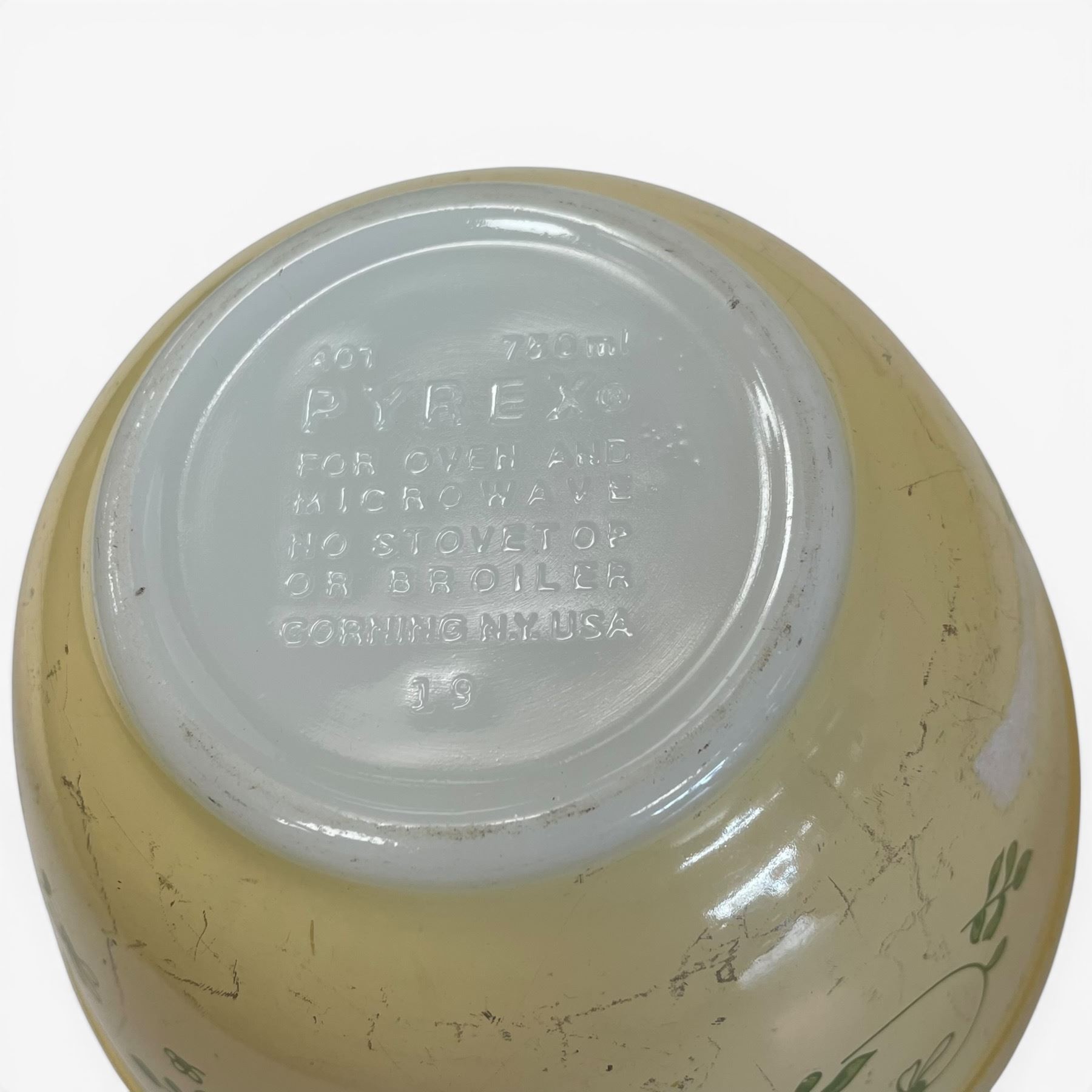 Lot 115 1970s Pyrex "Shenandoah AKA Wintergreen" 9" Tab Handle Mixing Bowl & Two 5.5" Bowls