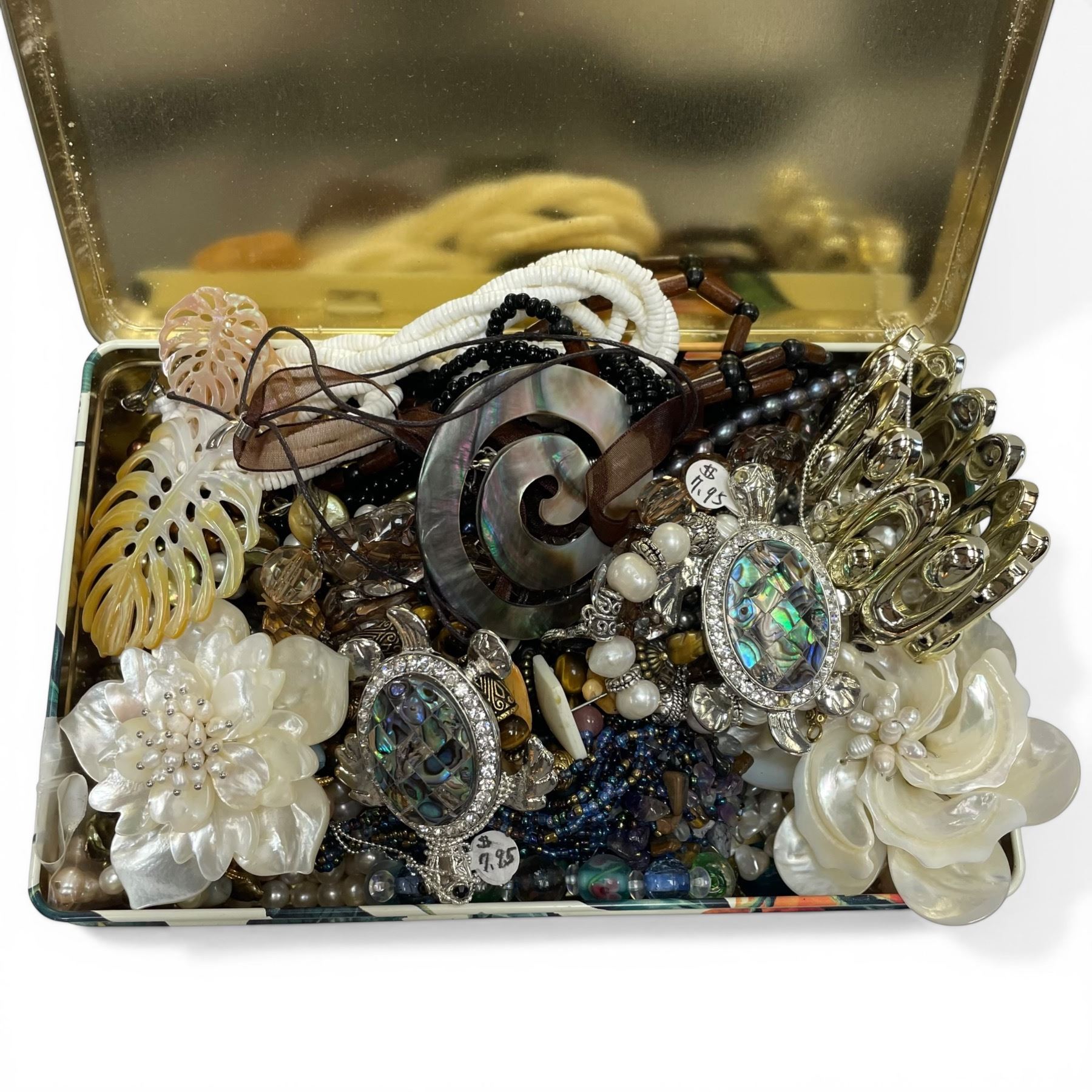 Tin Full of Fashion, Bead and Costume Jewelry (Tin is 5.5" x 9" x 205" deep)