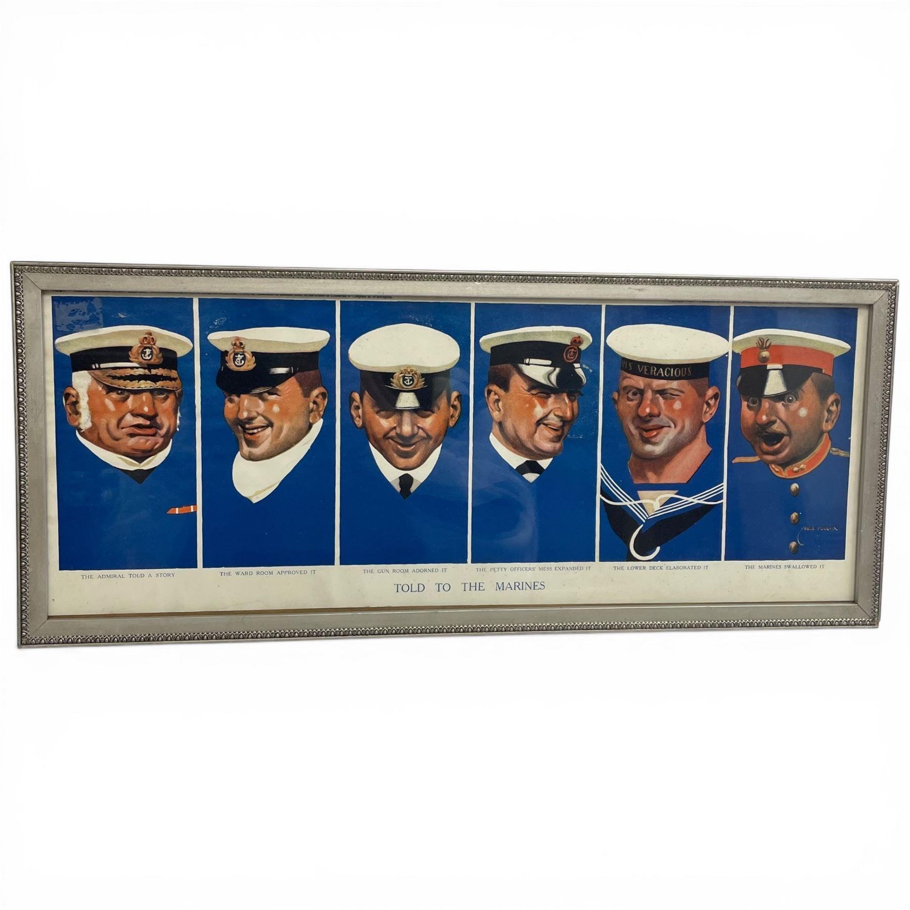 Early 20th Century Noel Pocock Print "Told to The Marines" (Frame dimensions: 8.5" x 20")