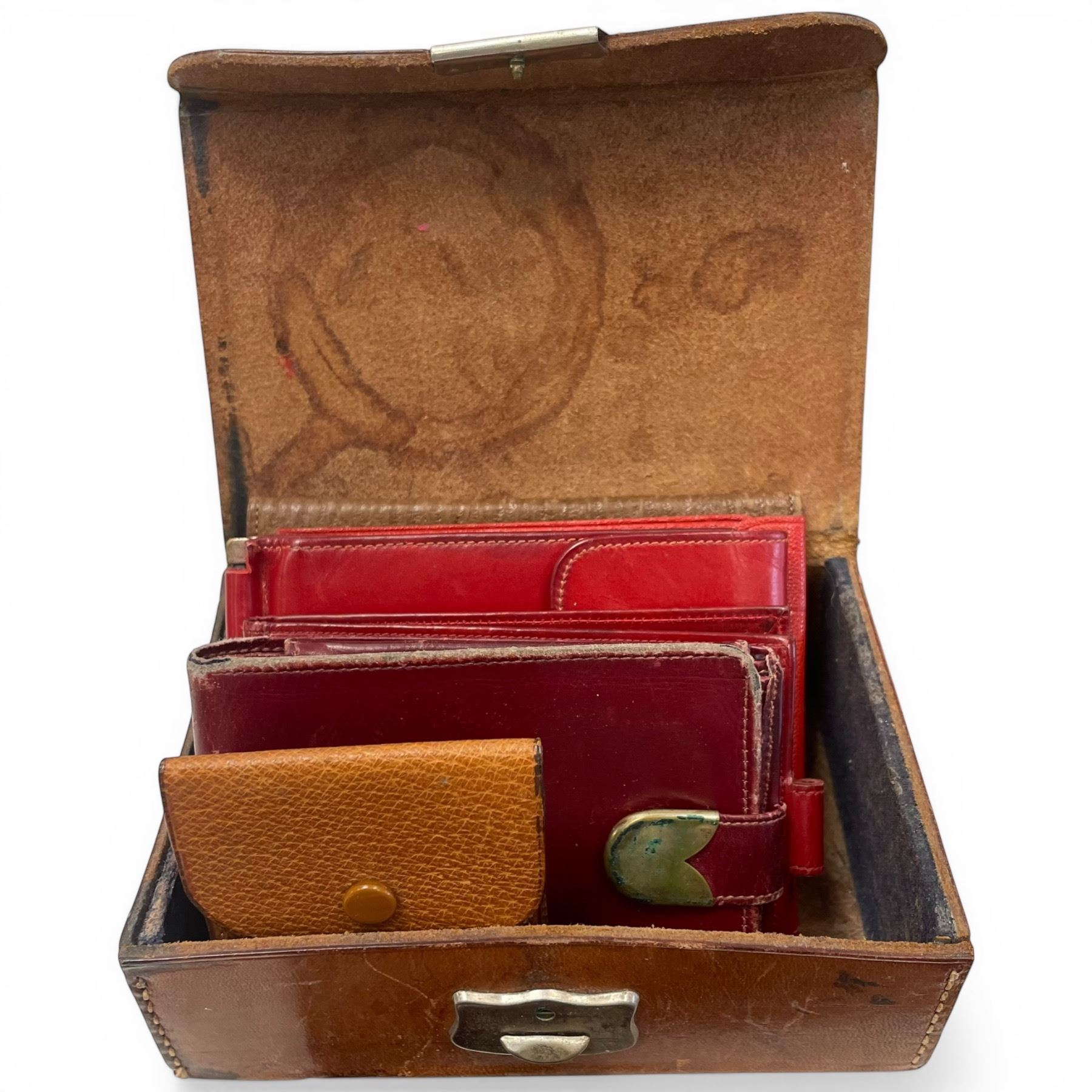 Lot 95 Collection of Vintage Leather & Cloth Purses & Wallets, Vintage Pens, Small Pink Bubble Glass Dish &