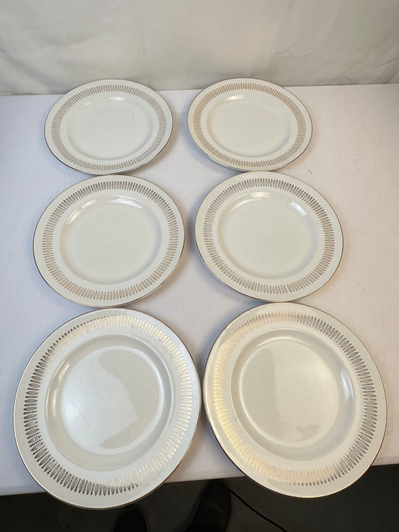 Lot 2132 Royal Knight Staffordshire Dinner Plates, 22k Gold Feather Decor