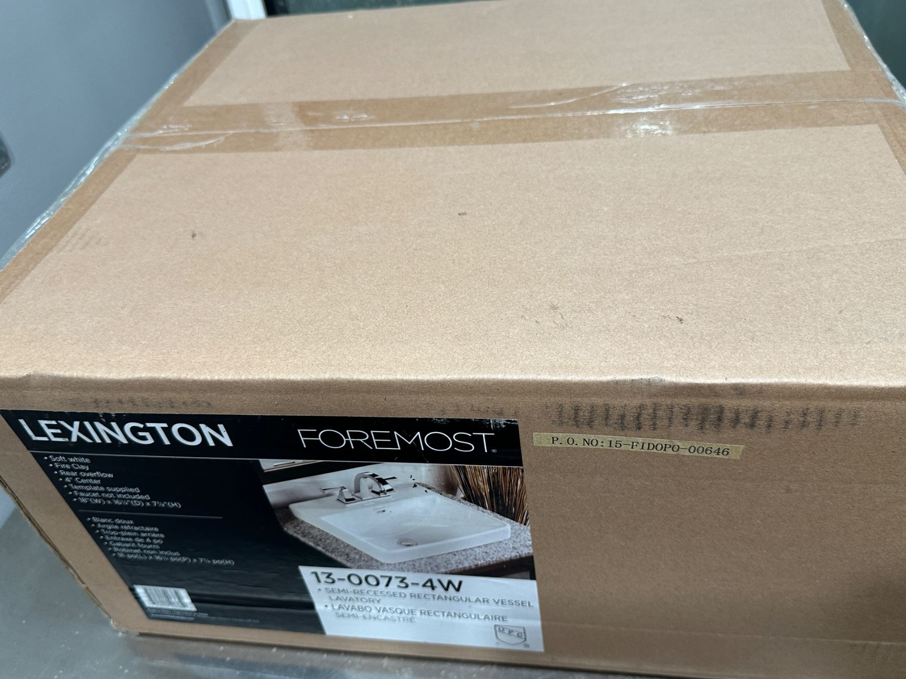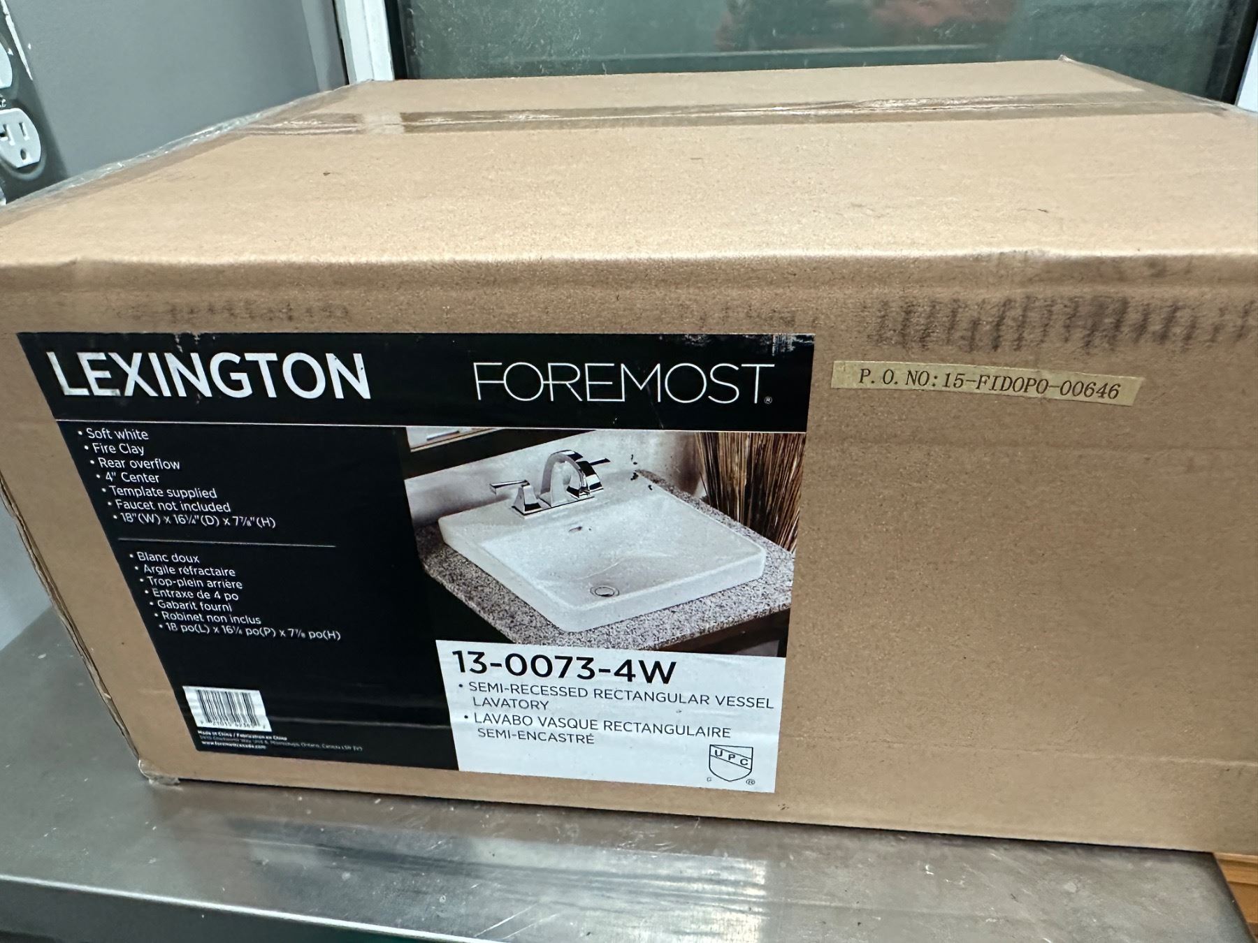 Lot 1711 Semi recessed rectangular bathroom sink (new in Box)