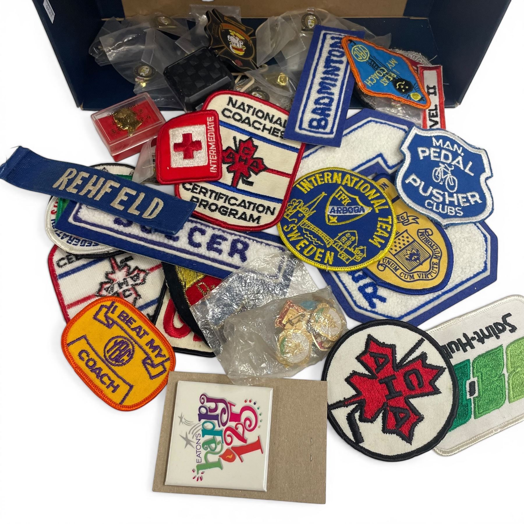 Lot 154 Box of Collectible Sew-on Patches and Lapel Pins