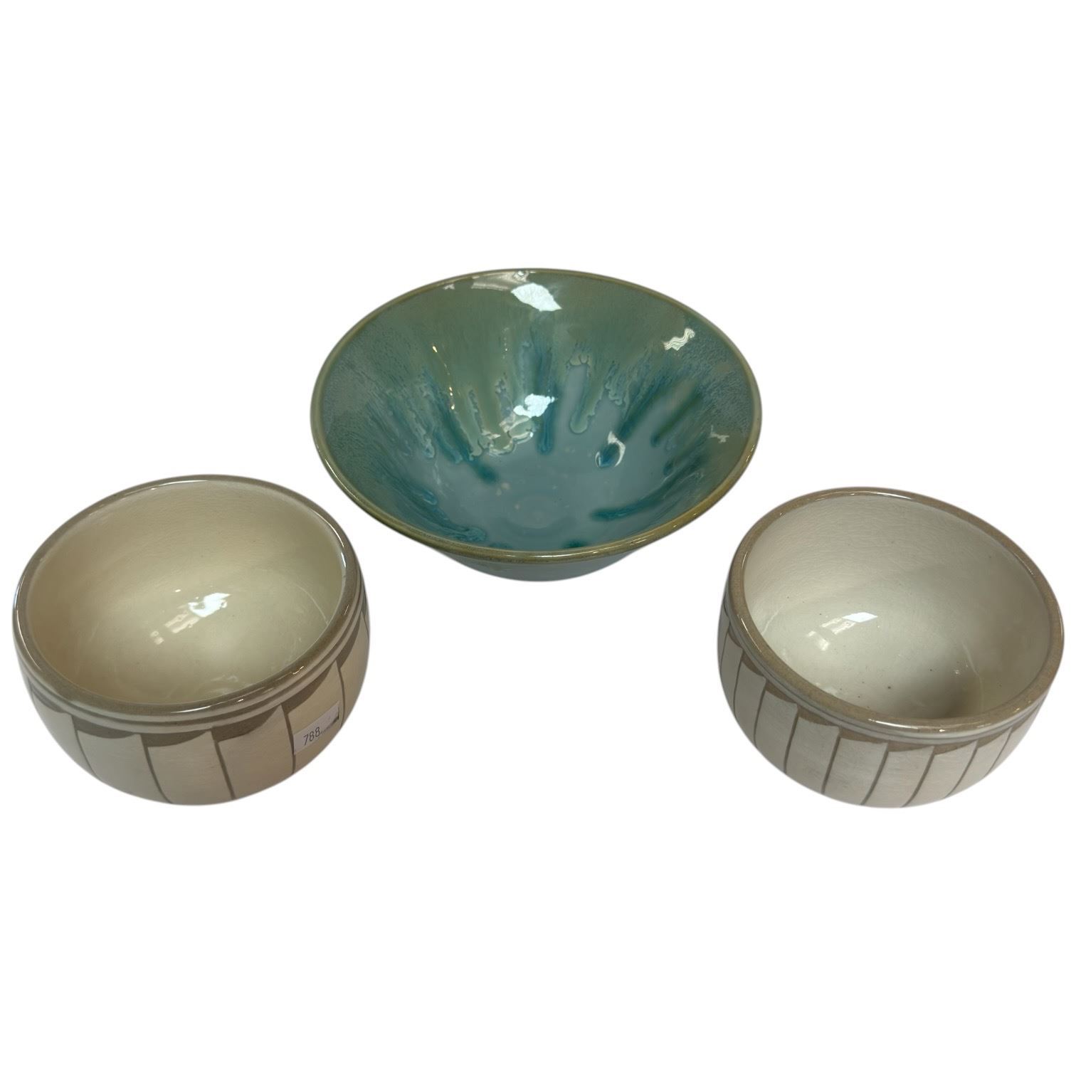 Lot 181 One 8" Diameter and Two 5" Diameter Glazed Ceramic Bowls