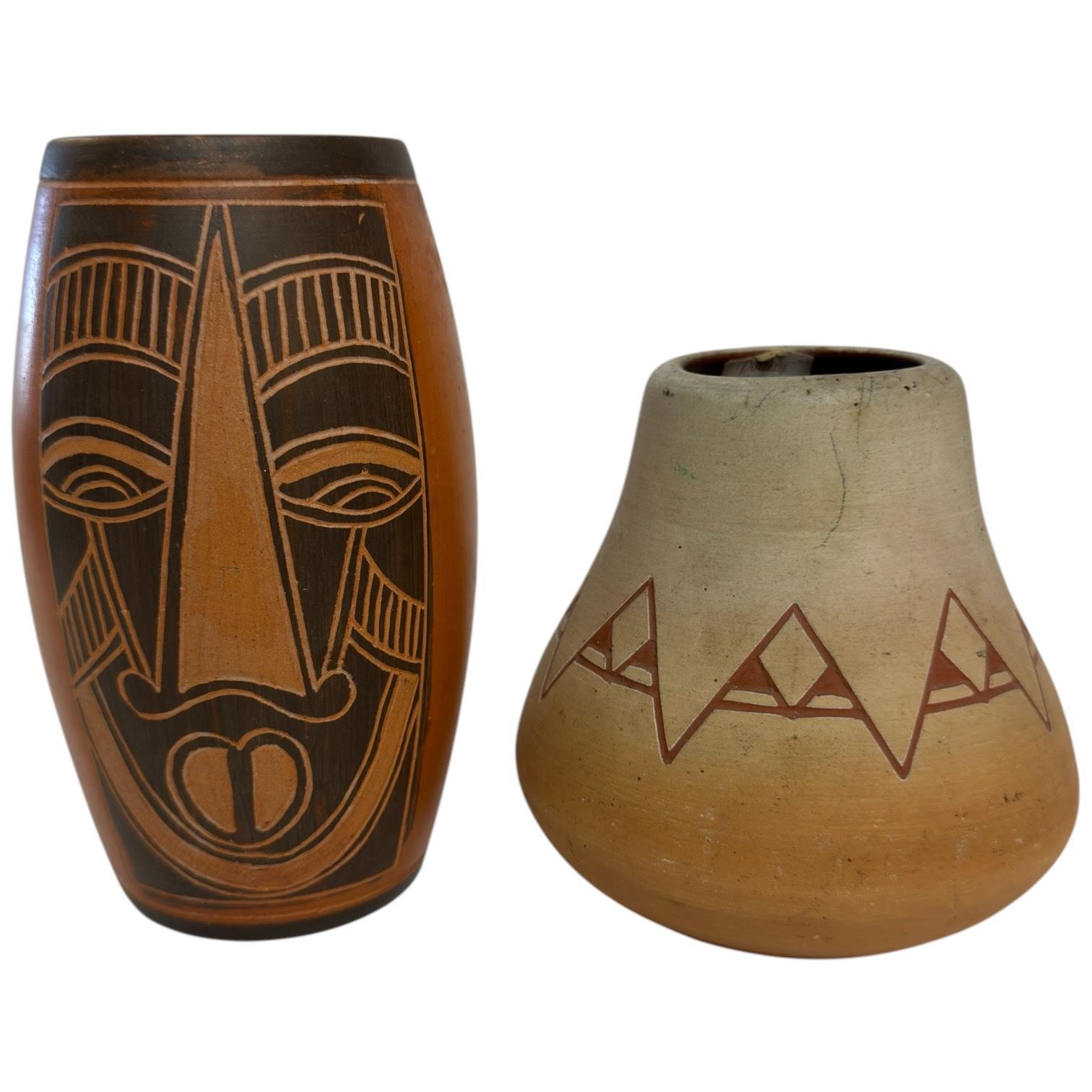 2 Southwestern Style Glazed Pottery Vases (tallest is 6")