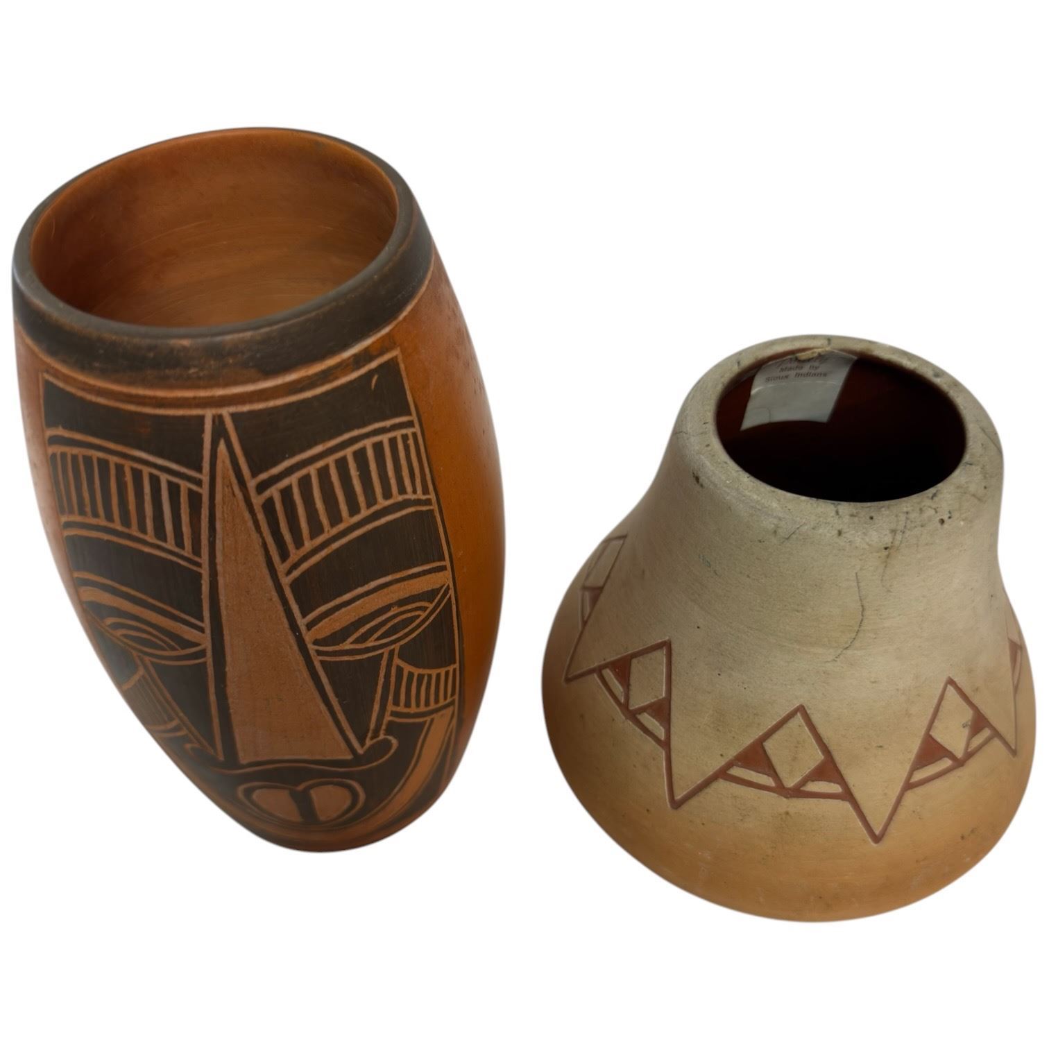 Lot 189 2 Southwestern Style Glazed Pottery Vases (tallest is 6")