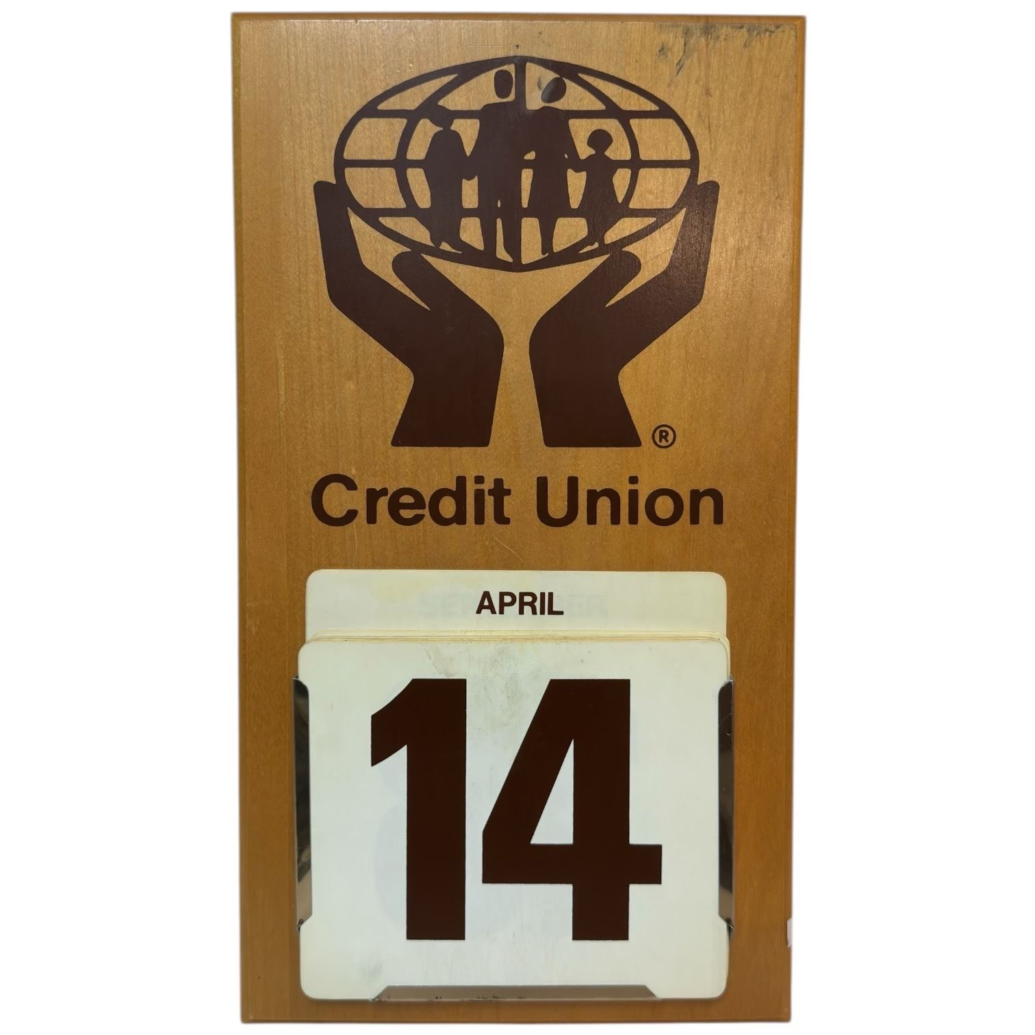 Vintage Wood Backed Credit Union Perpetual Calendar (9" x 16")
