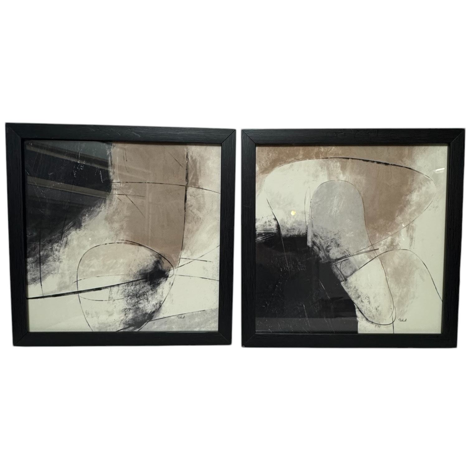 2 Framed Abstract Prints by Vahid (Frame dimensions: 13" x 13")