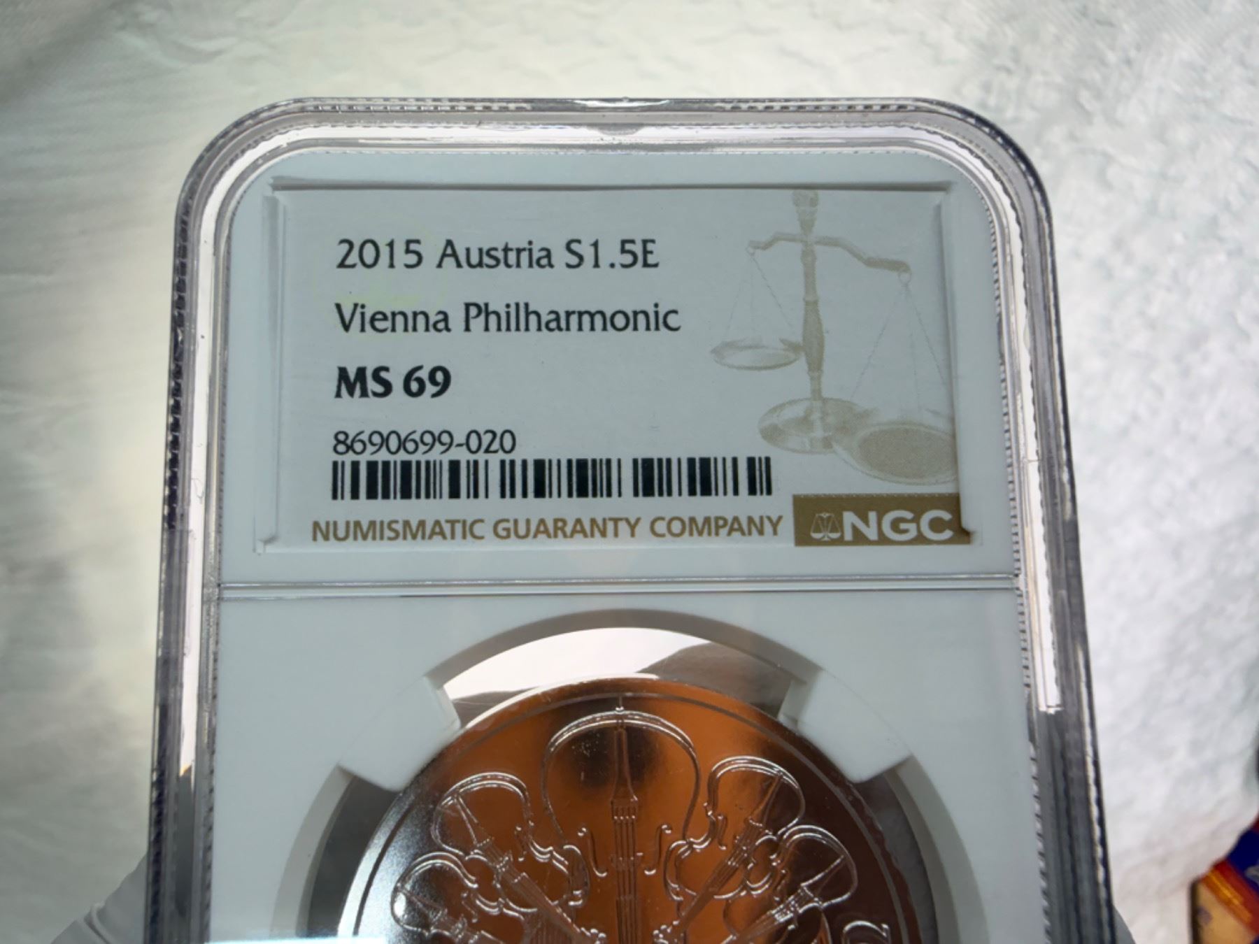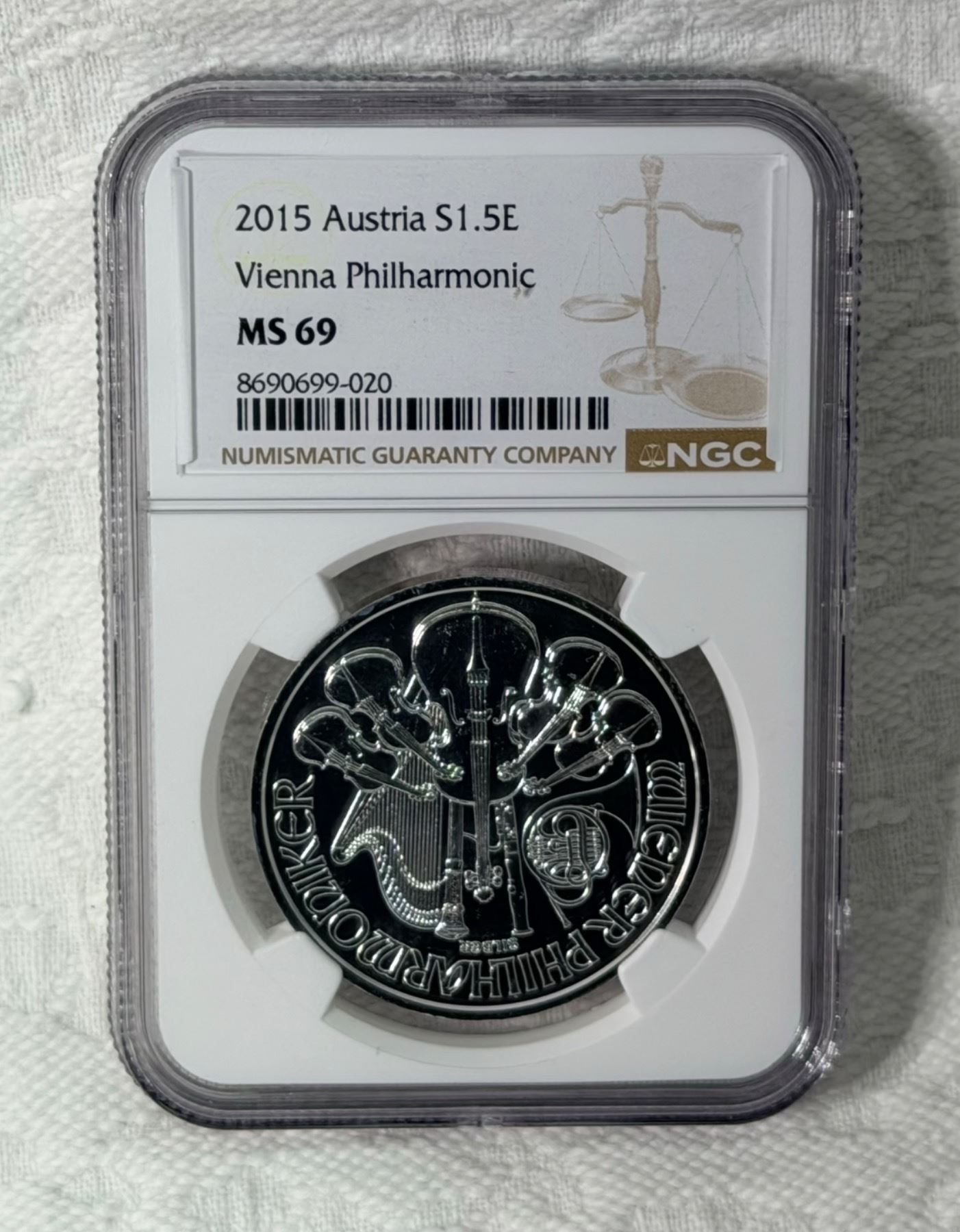 Lot 13 AUSTRIA 1.5 EURO VIENNA PHILHARMONIC SILVER COIN - 2015 - MS69