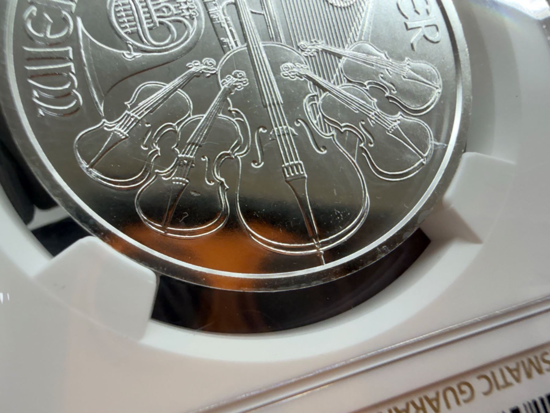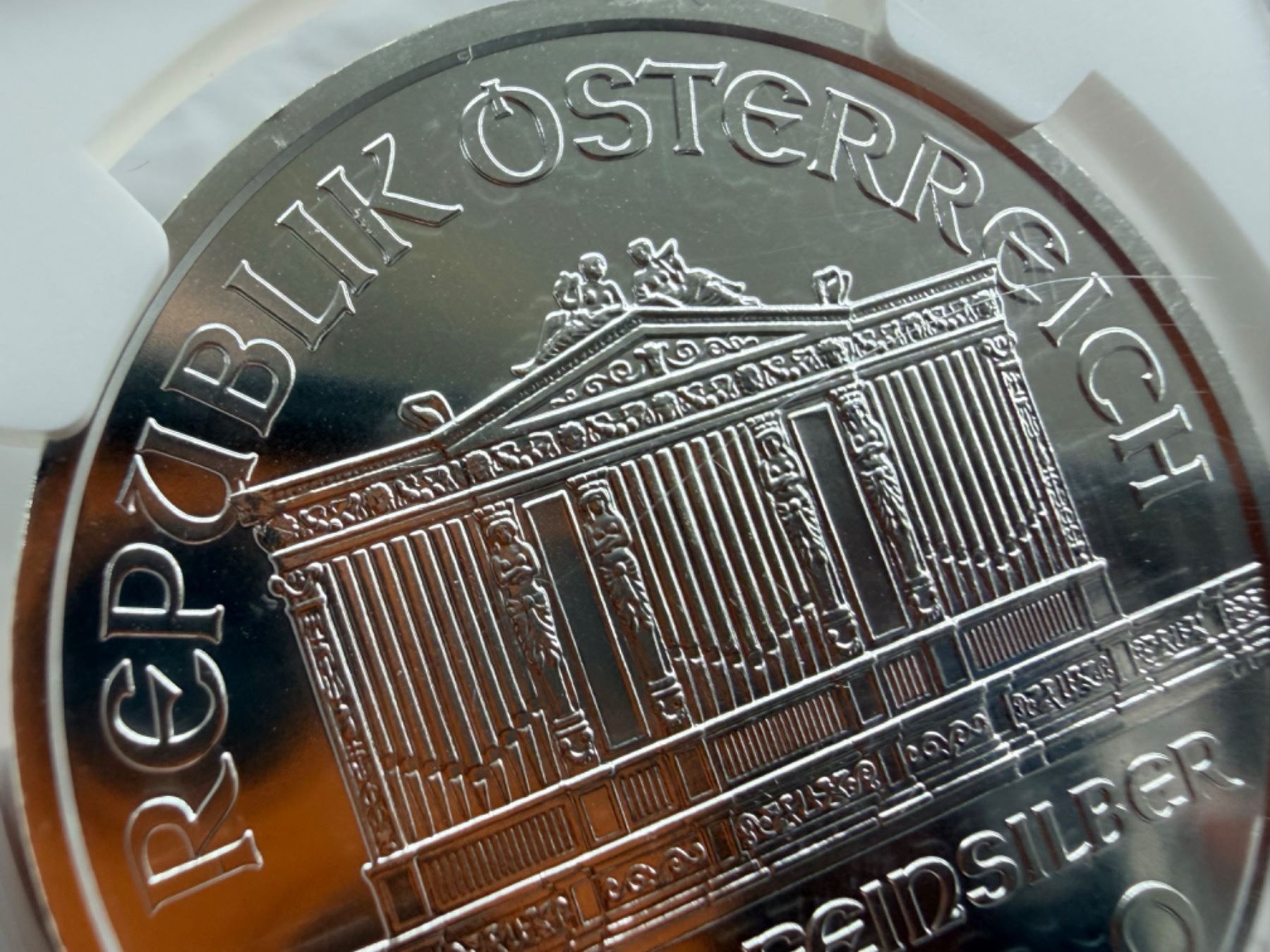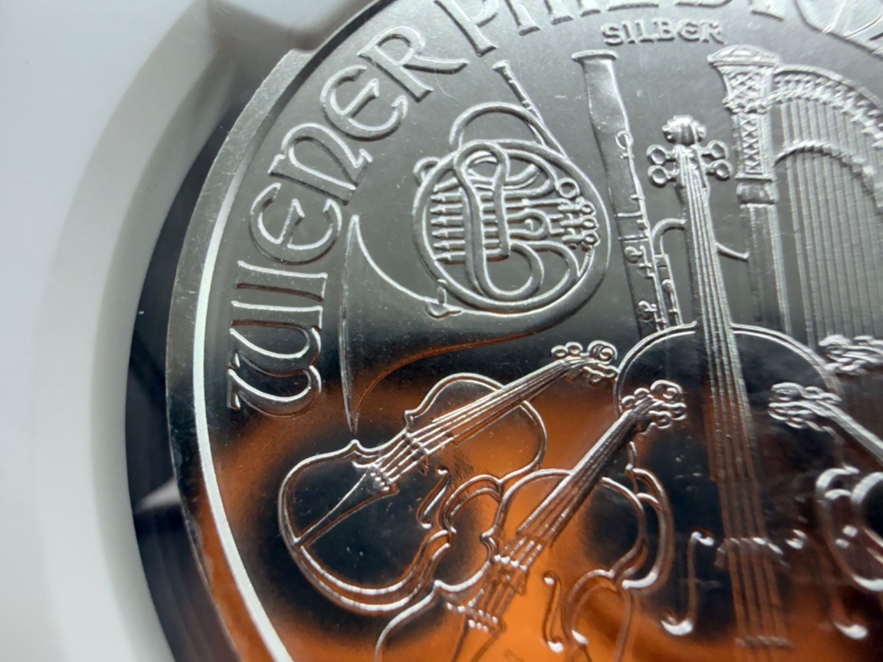 CONTAINS 1 TROY OUNCE OF .999 FINE SILVER; FEATURES THE GREAT ORGAN FROM THE MUSIKVEREIN ON THE OBVERSE WITH MUSICAL INSTRUMENTS, INCLUDING THE HARP, VIOLIN, CELLO, AND FRENCH HORN ON THE REVERSE