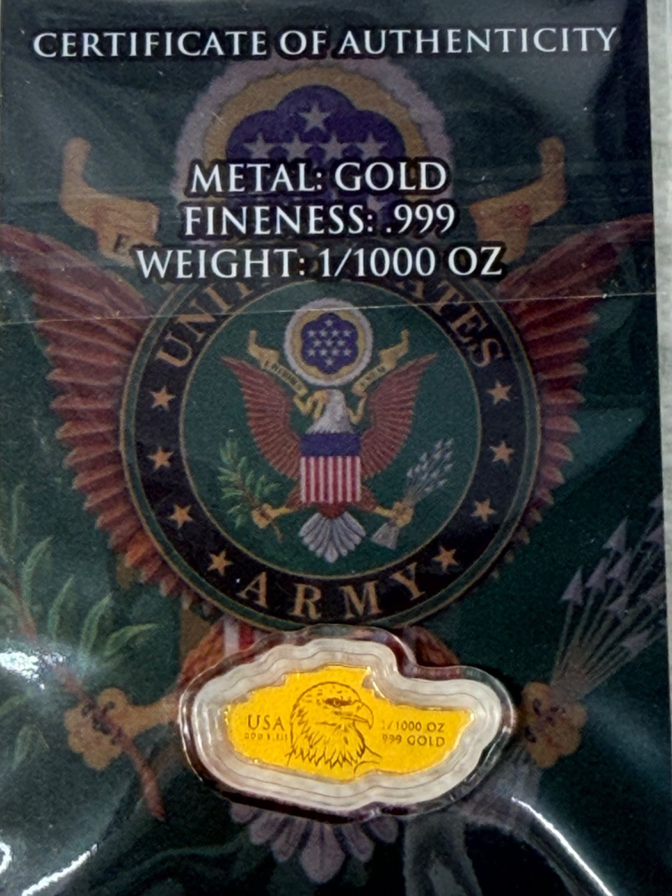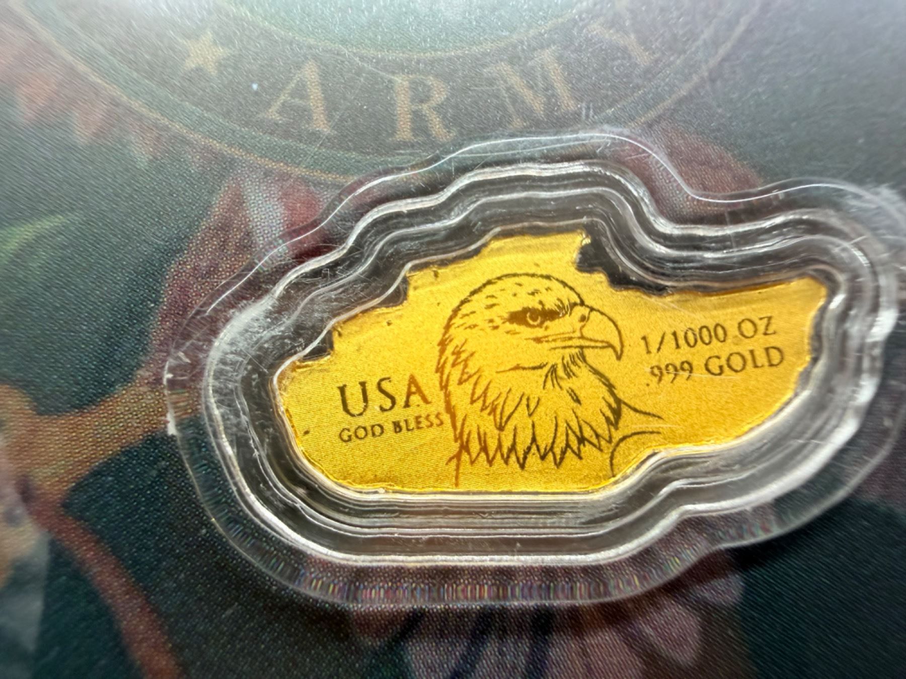 USA EAGLE ARMY CARD FRACTIONAL GOLD BAR BULLION - .999 FINE GOLD