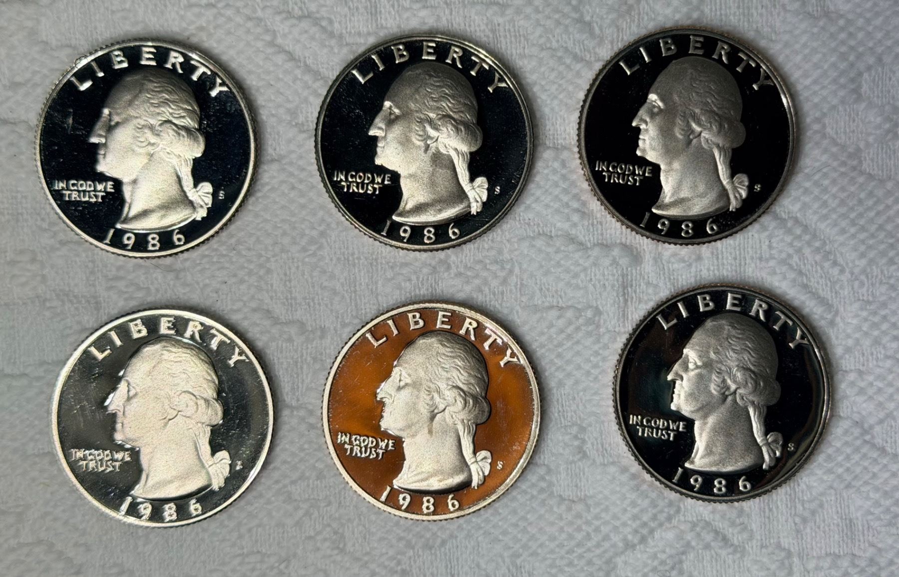 WASHINGTON QUARTER - 1986S; LOT OF 6; SAN FRANCISCO MINT