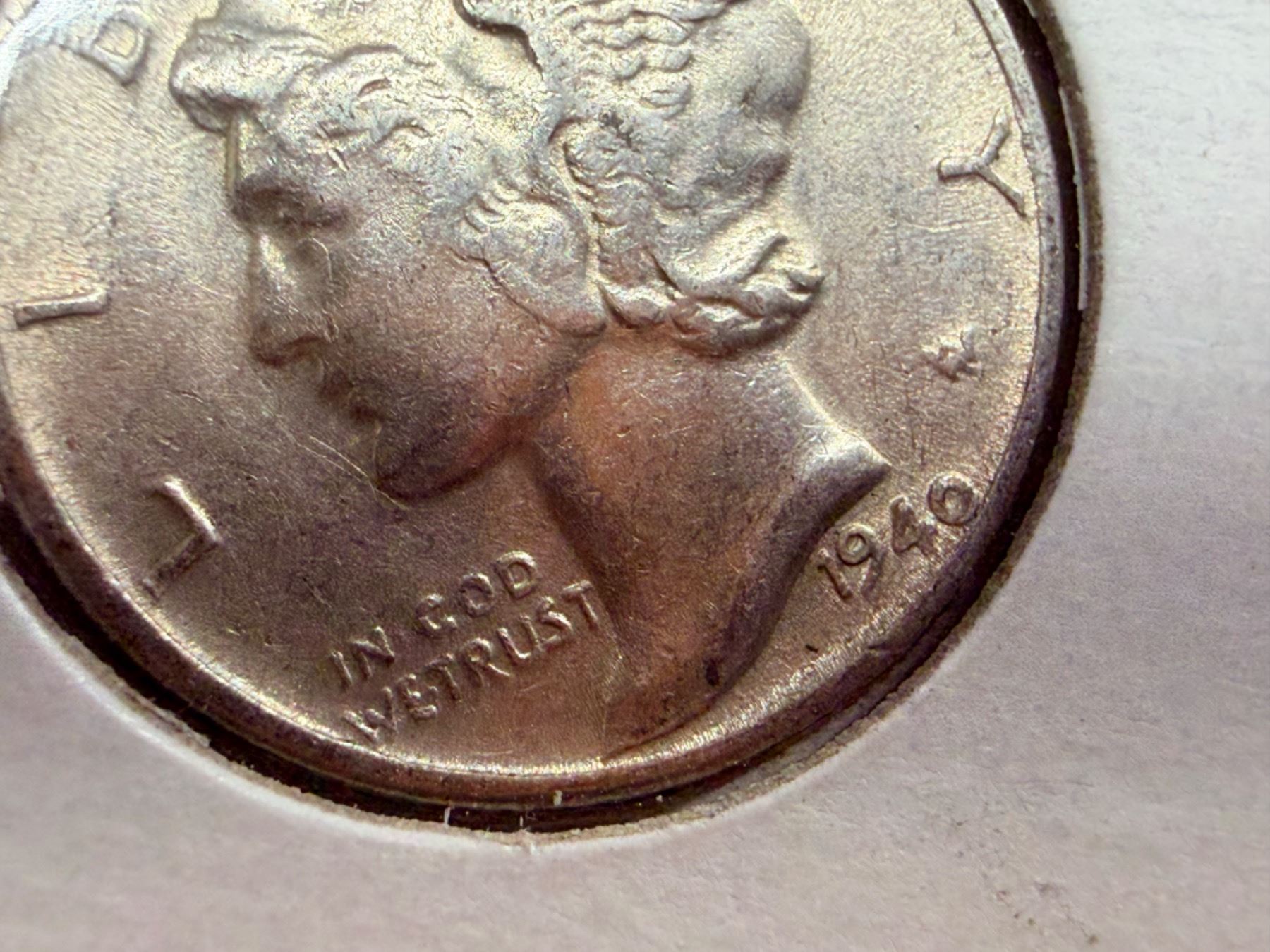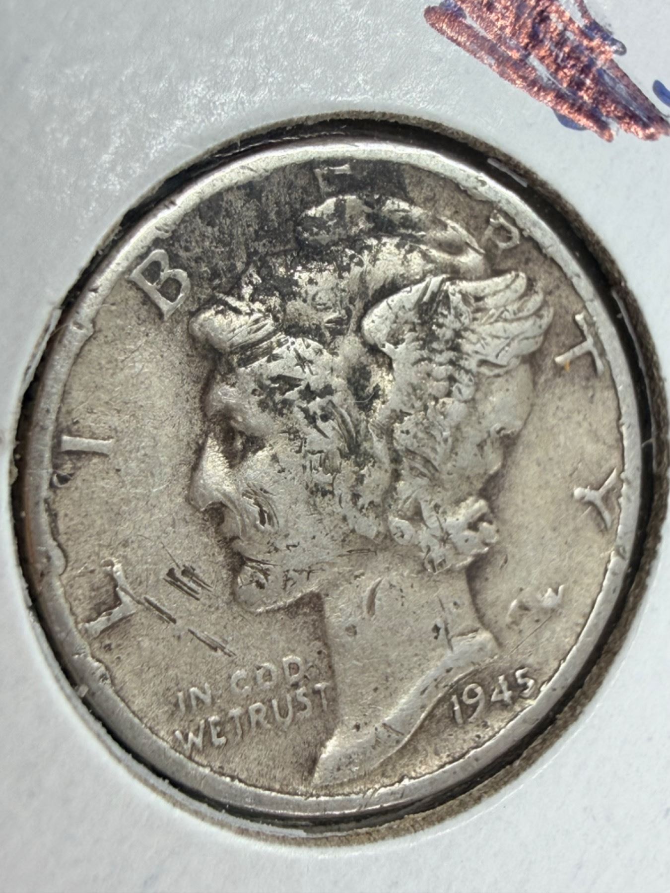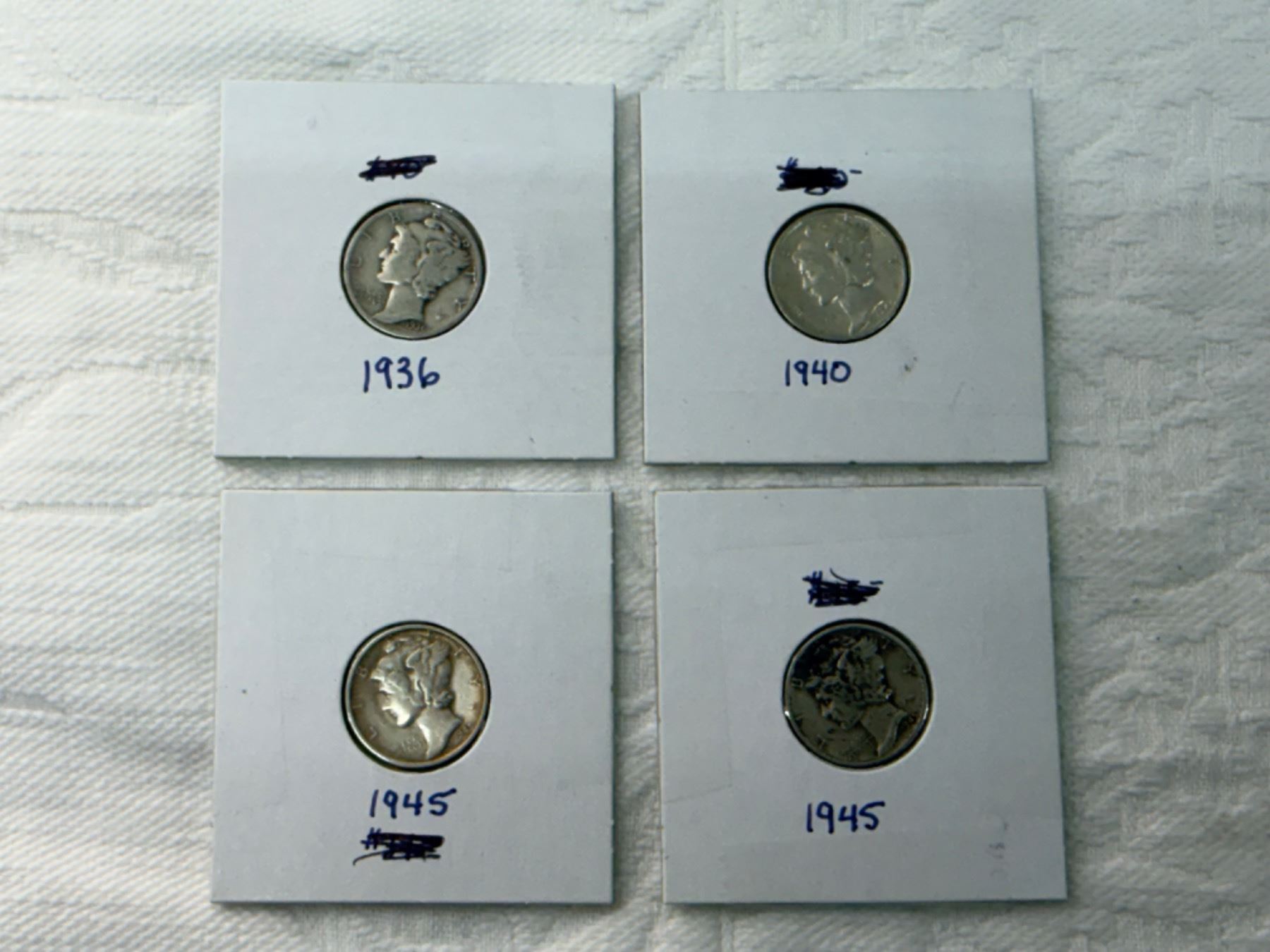 MERCURY SILVER DIMES - 1939, 1940D, 1945, 1945S; DENVER, PHILADELPHIA AND SAN FRANCISCO MINTS