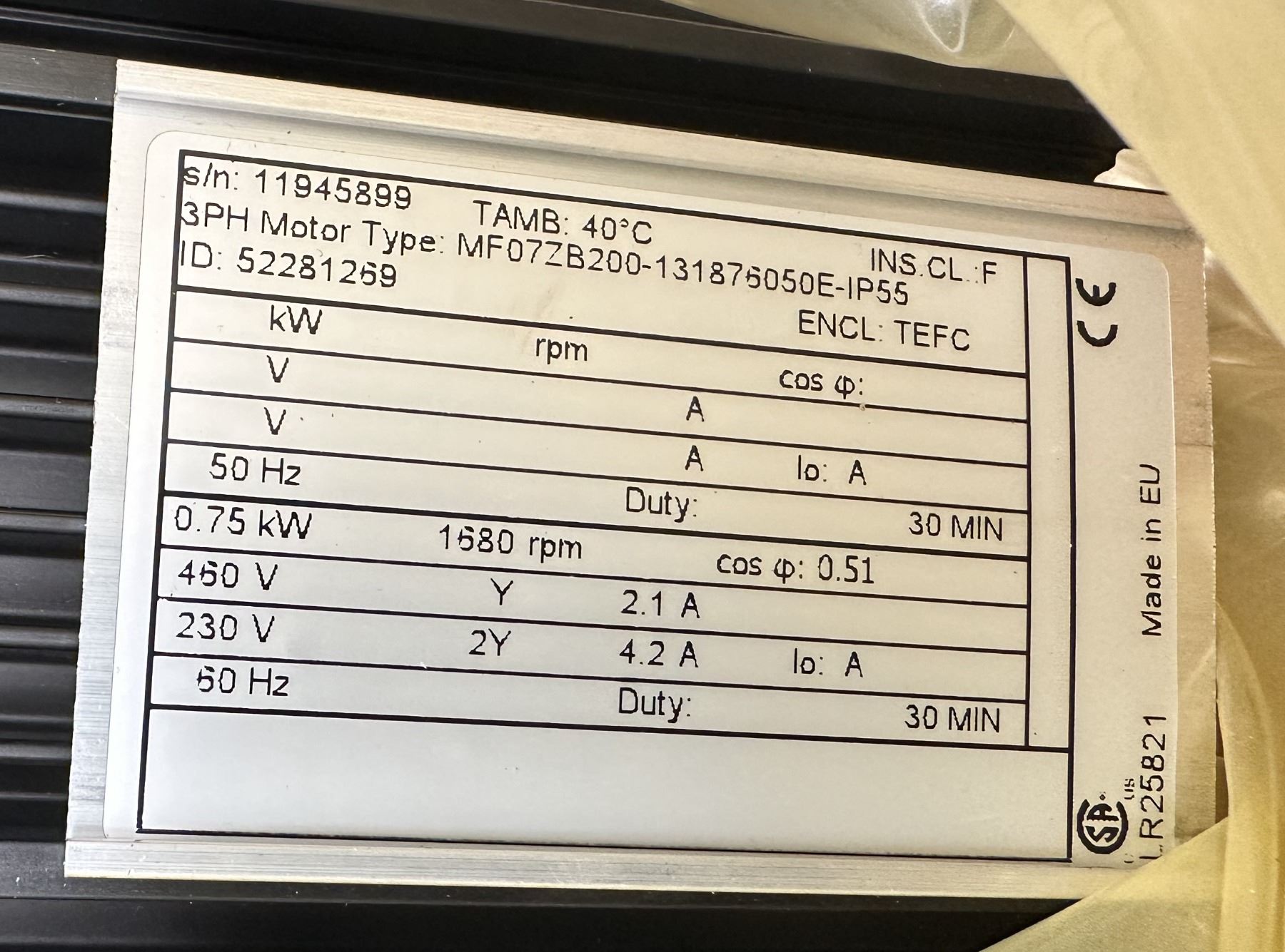 Lot 352 R & M #MF07ZB200-131876050E-IP55 Hoisting Motor