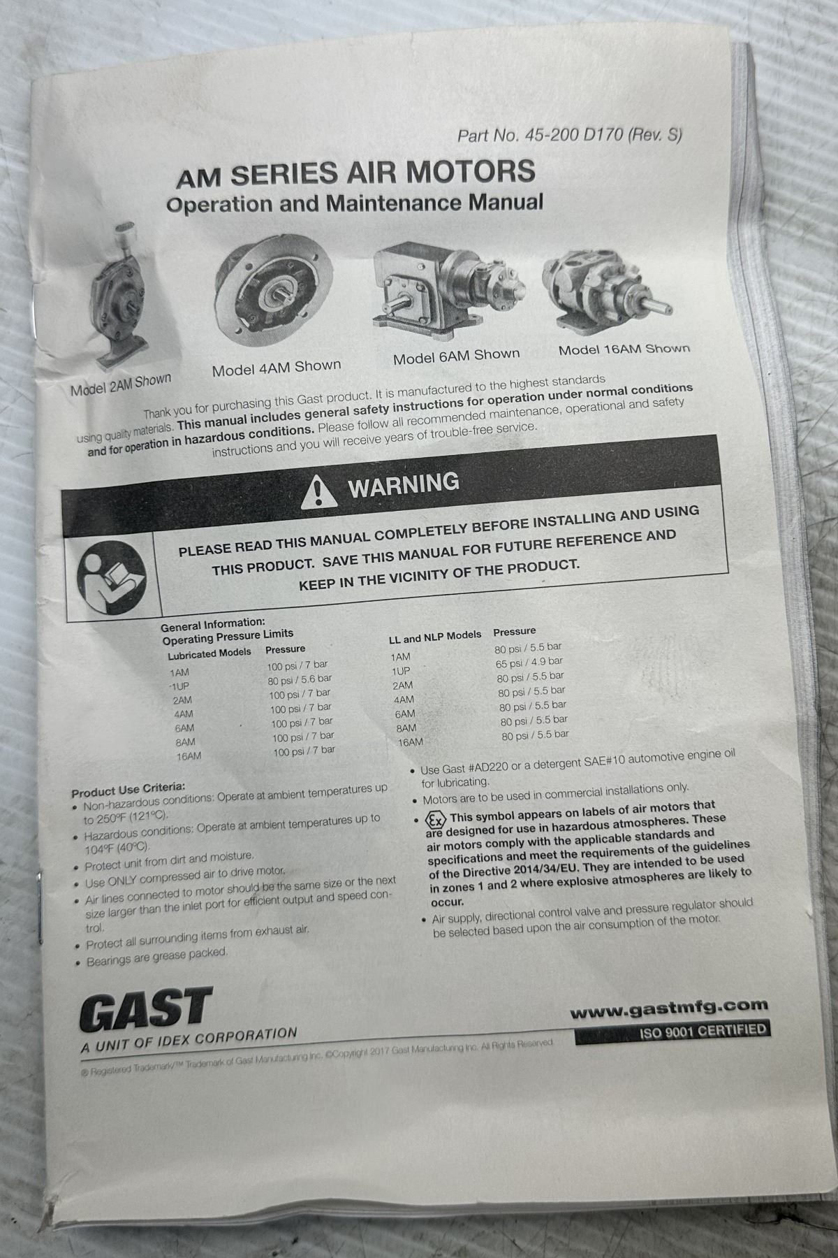 (2) 1.5 HP Gast #4AM-NRV-22B Reversible Face Air Actuated Motors