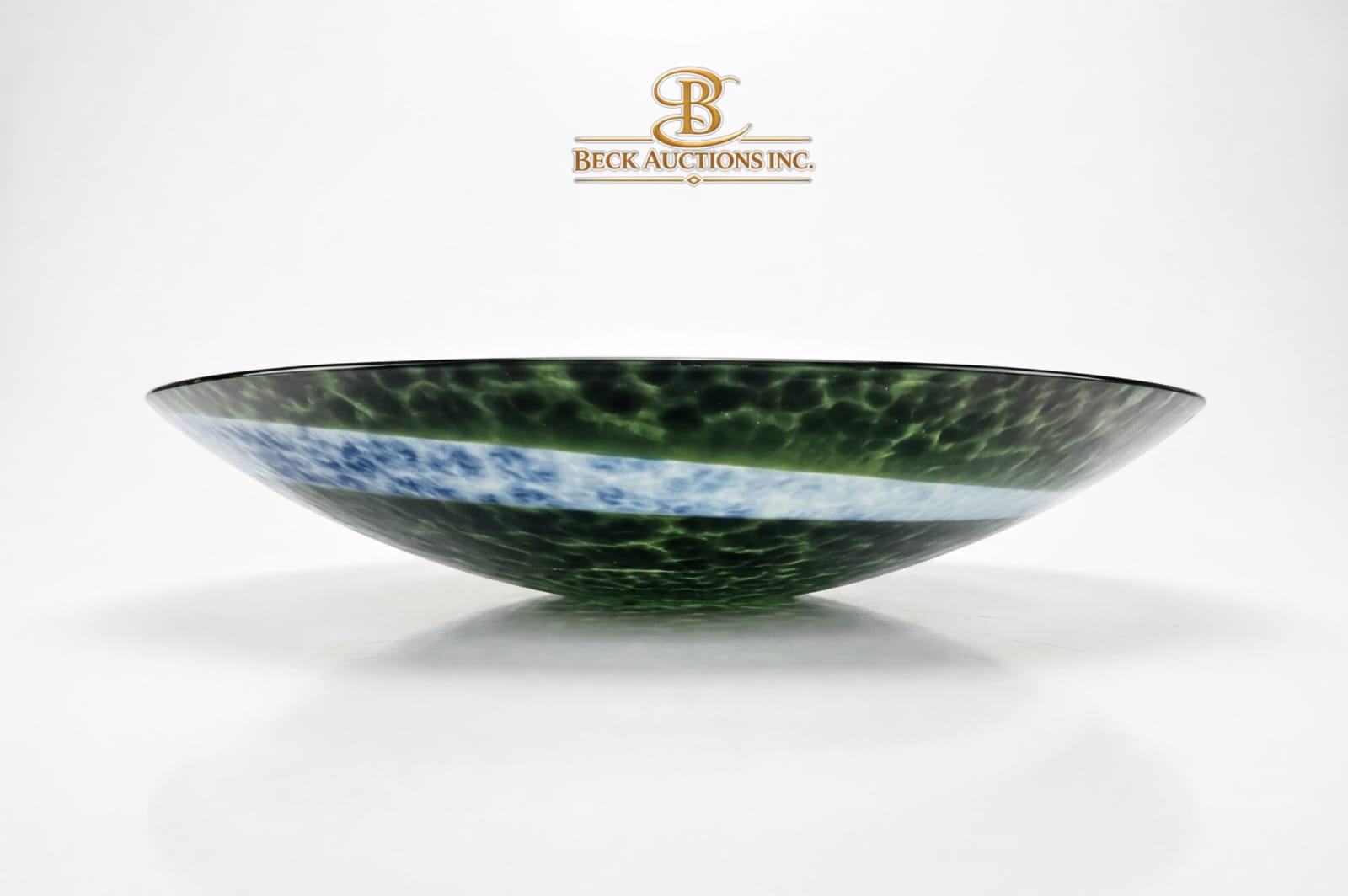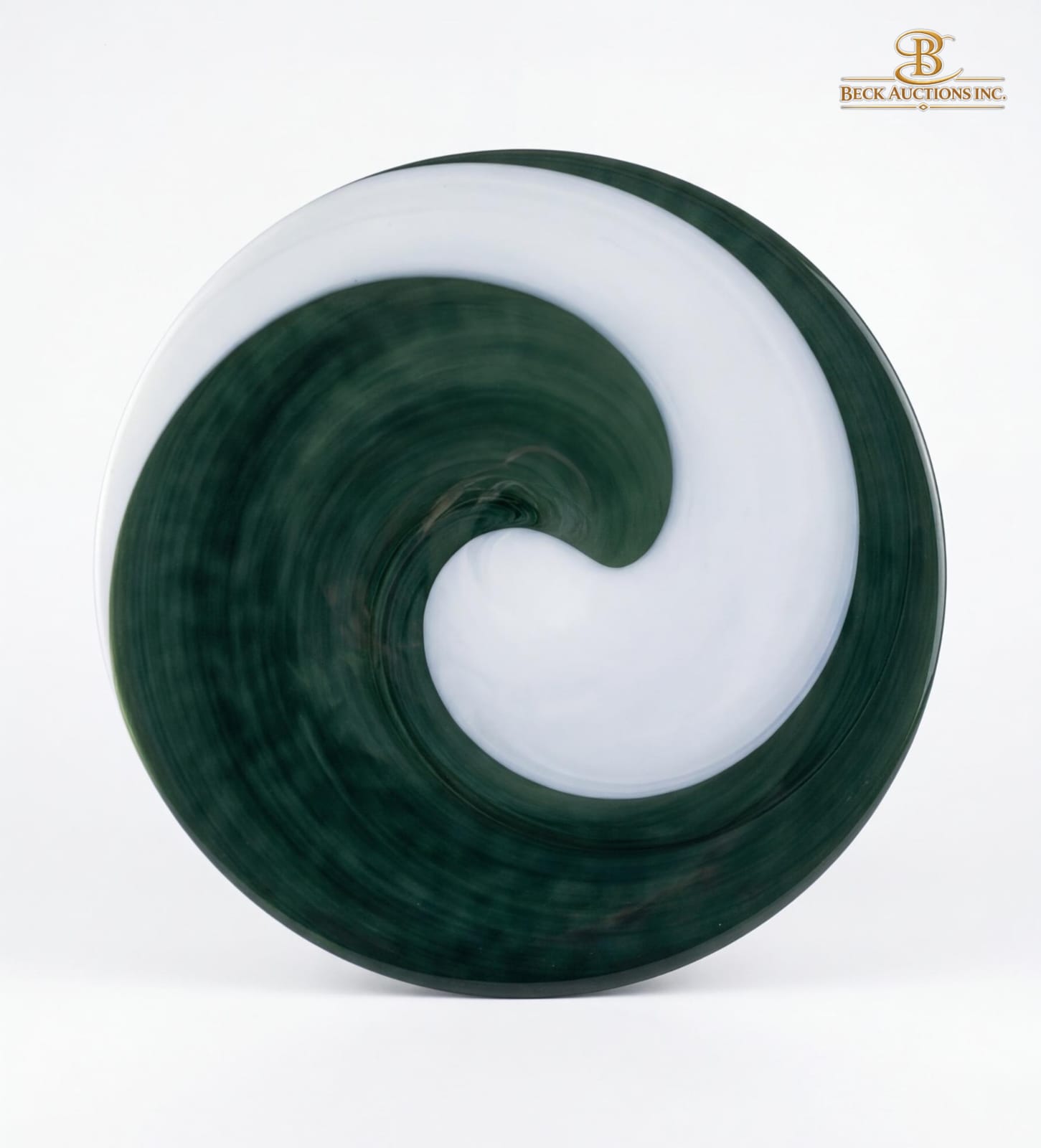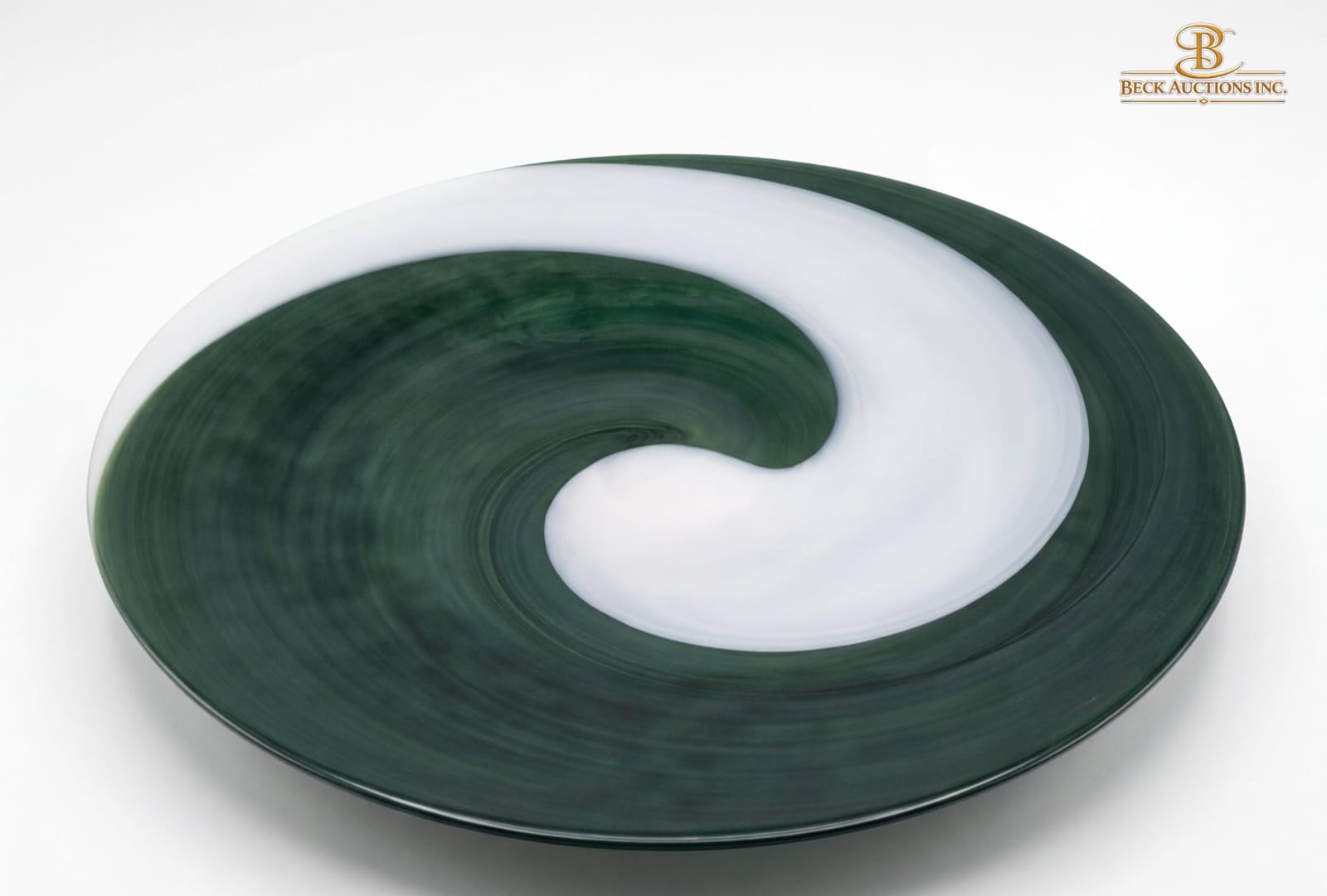 Green And White Swirl Design Handmade Art Glass Centerpiece Bowl 18''INCHES , In The Style Of Murano Glass,