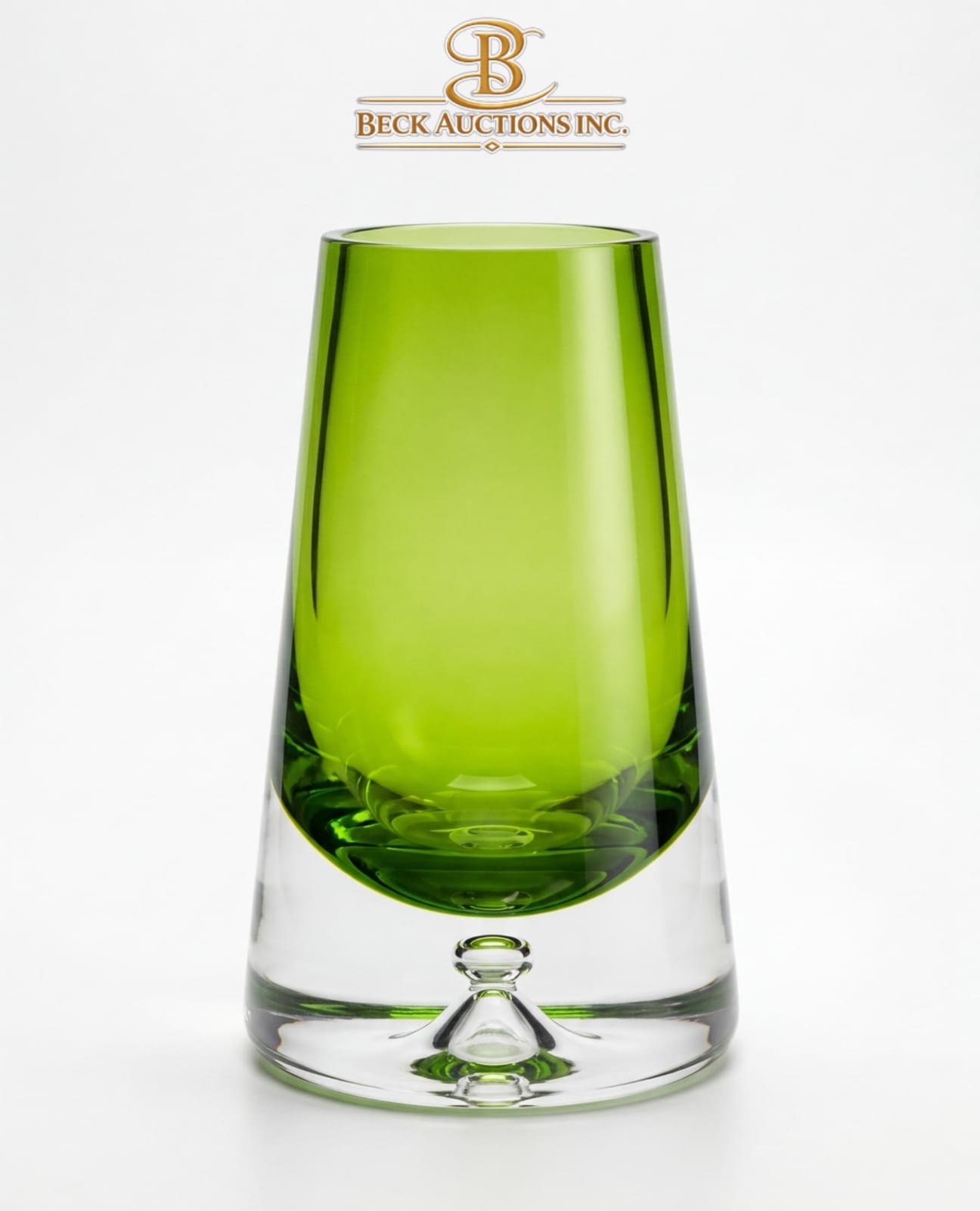 Decorative Sculpture Of The Egyptian Goddess Serket 9''INCHES HEIGHT, Green Glass Vase A Clear "Controlled Bubble" 7''INCHES HEIGHT