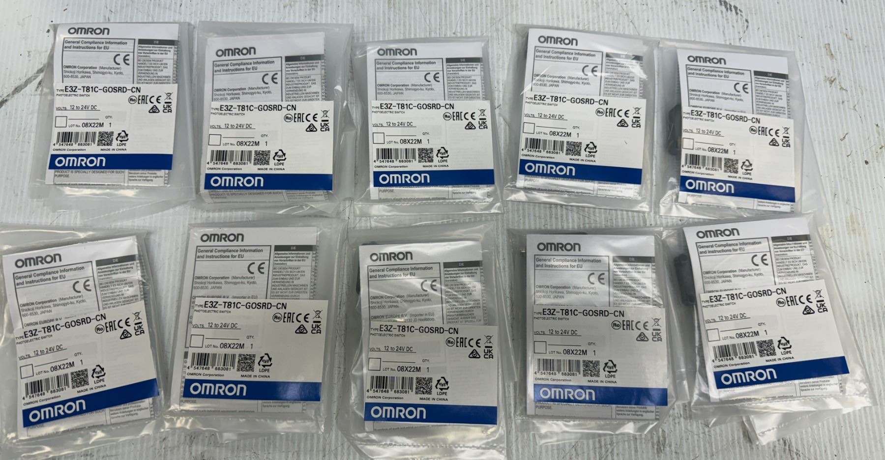 Lot of (10) Omron #E3Z-T81C-G0SRD-CN Sensors