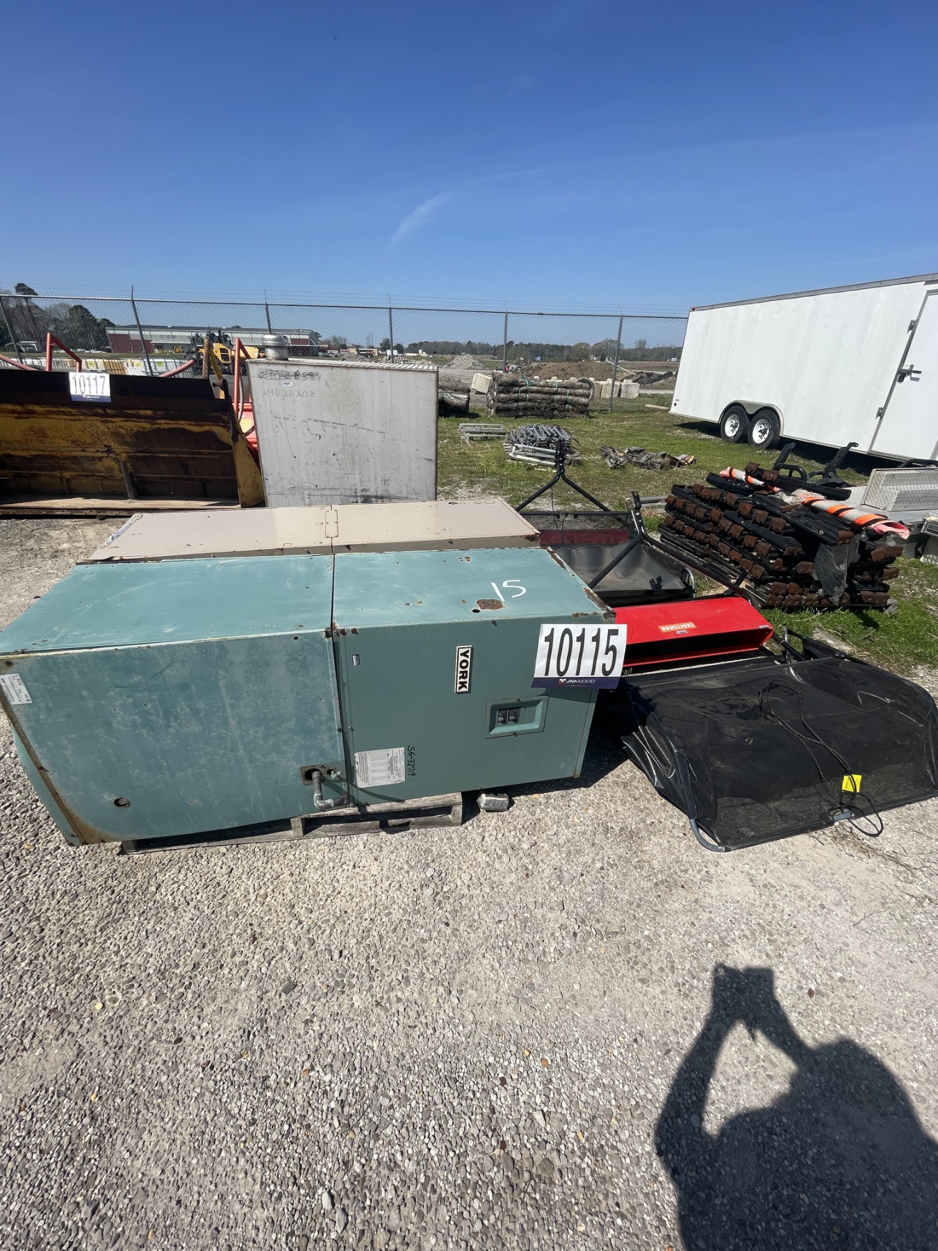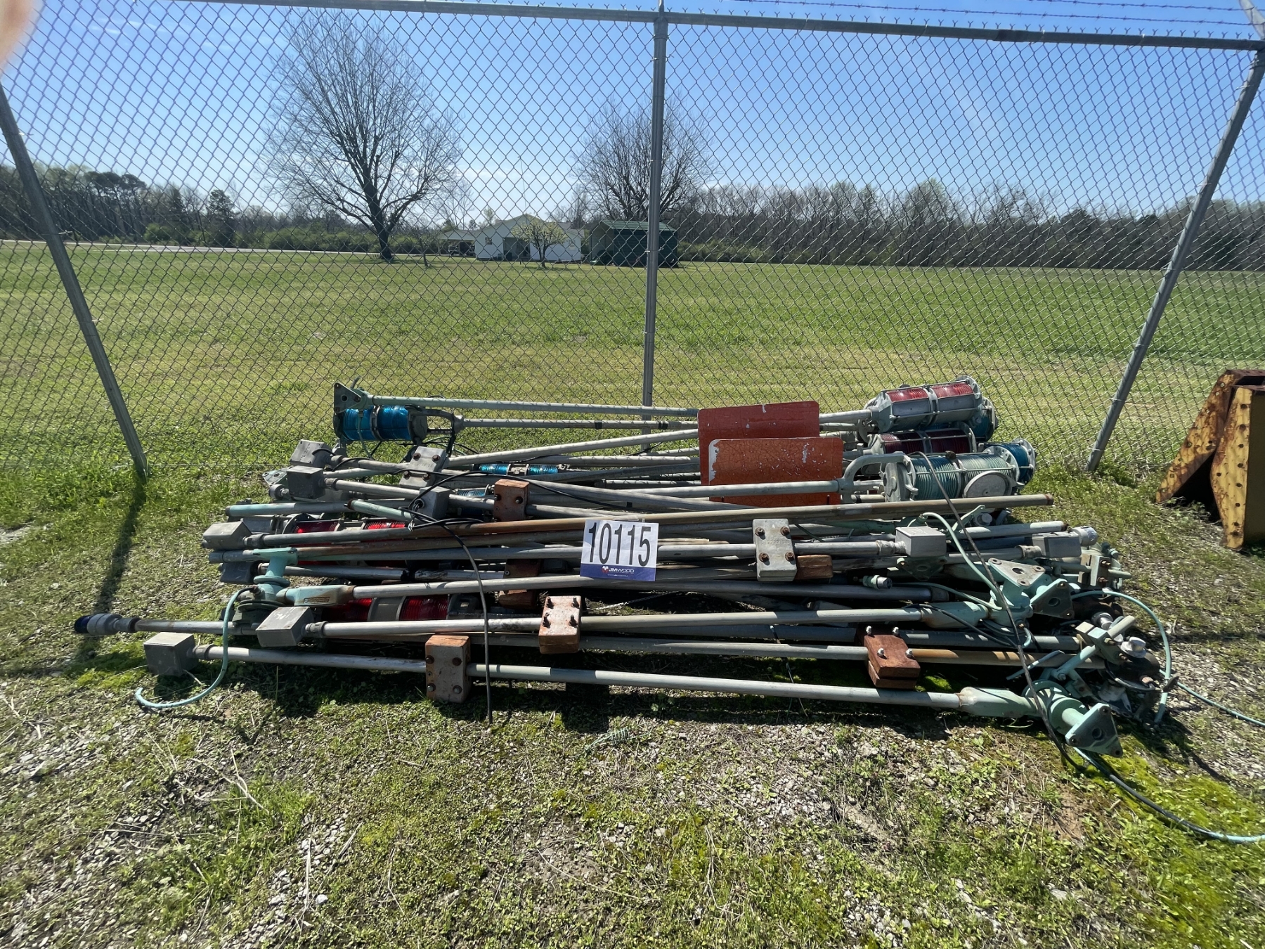 lawn sweeper, electrical panels, beacon poles, pallet of steel segments, fuel tank, Selling Offsite: Located in Fayette, AL