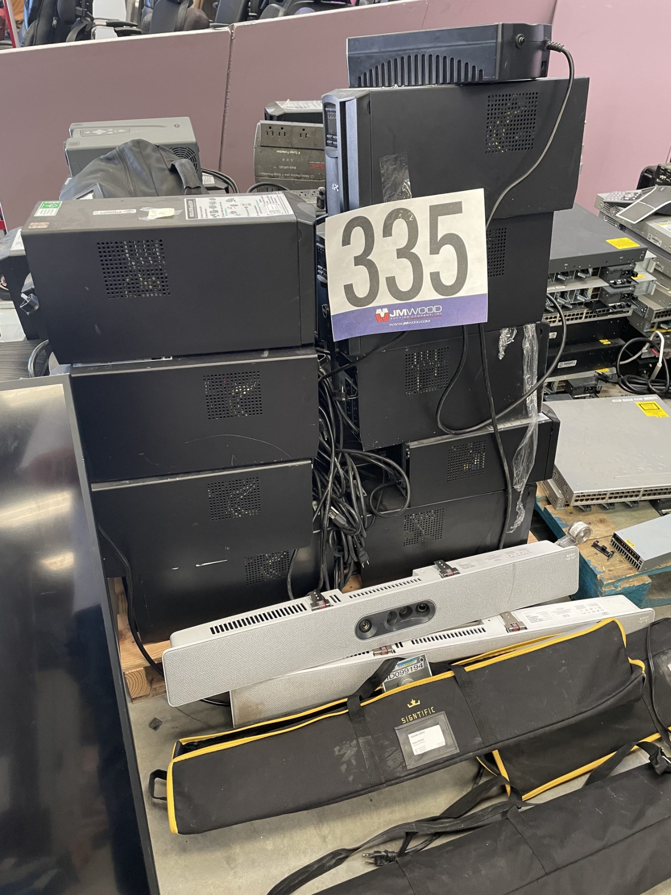 televisions, UPS's, projectors, speaker, network switches, server computers, email filter appliance, recording system, monitors, routers, Located in Montgomery, AL