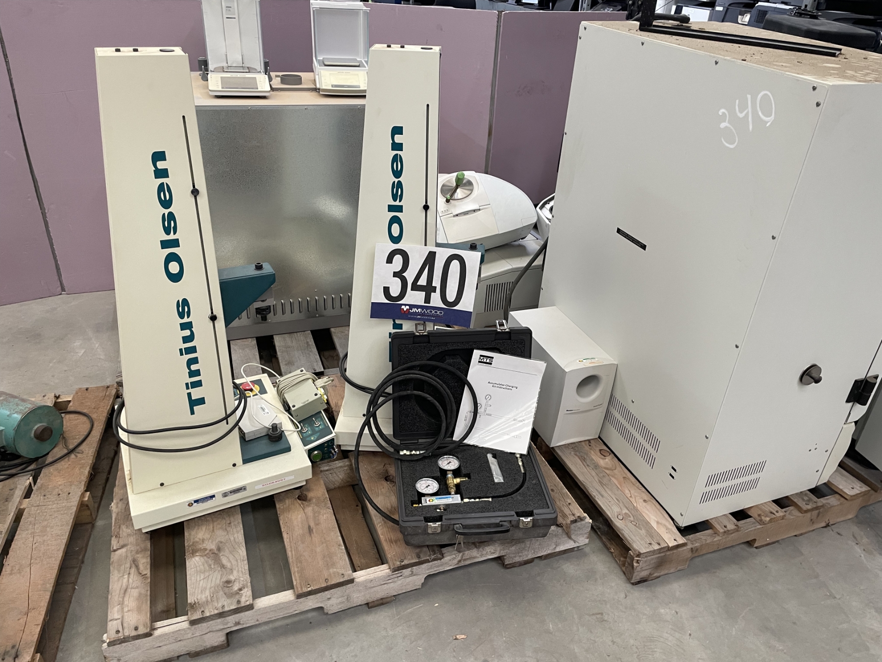 lab press, extractor, test molds, power converter, viscometer, lab ovens, hyd manifold, servo controller, soil tester, convection oven, earth grounding tester, spectrophotometers, Located in Montgomery, AL