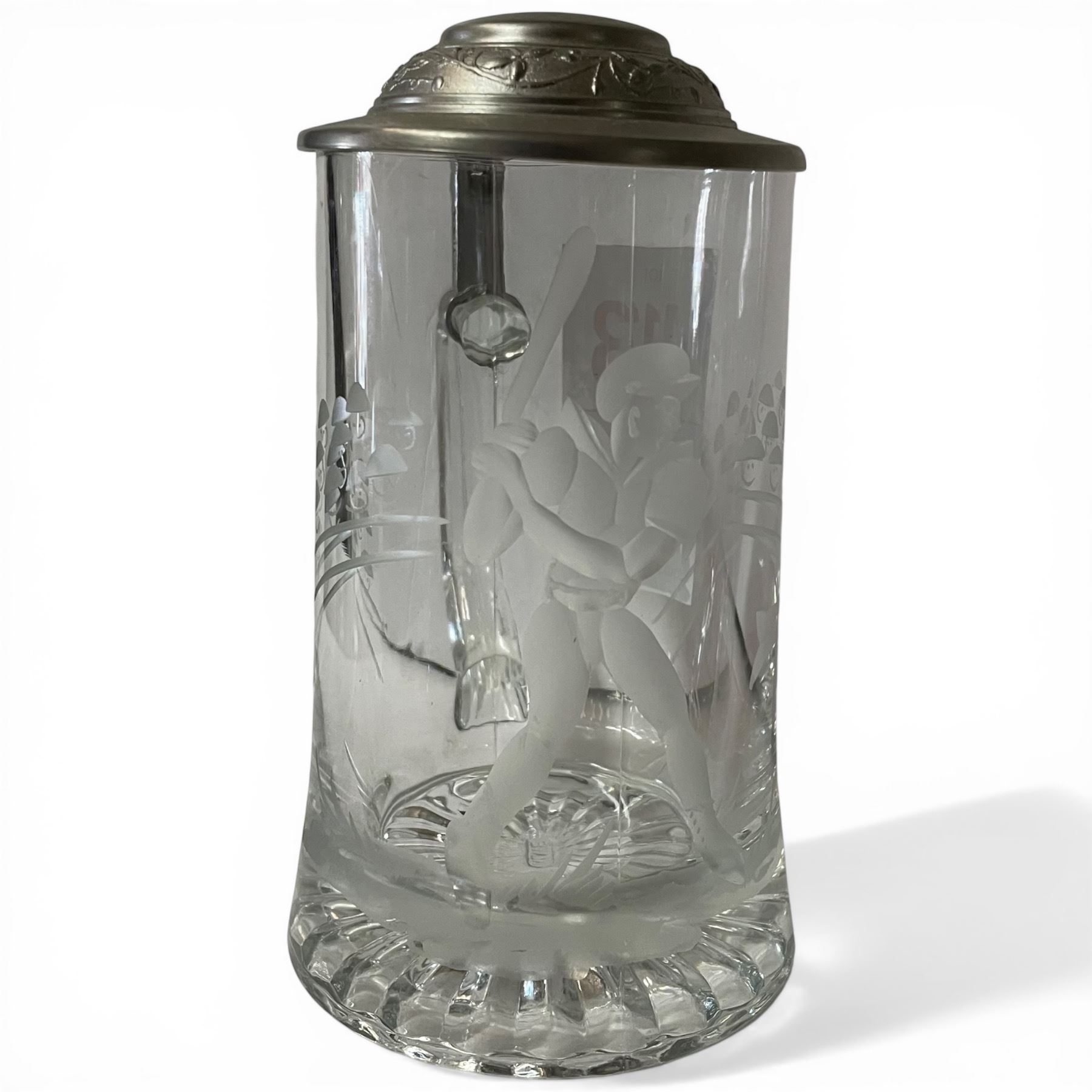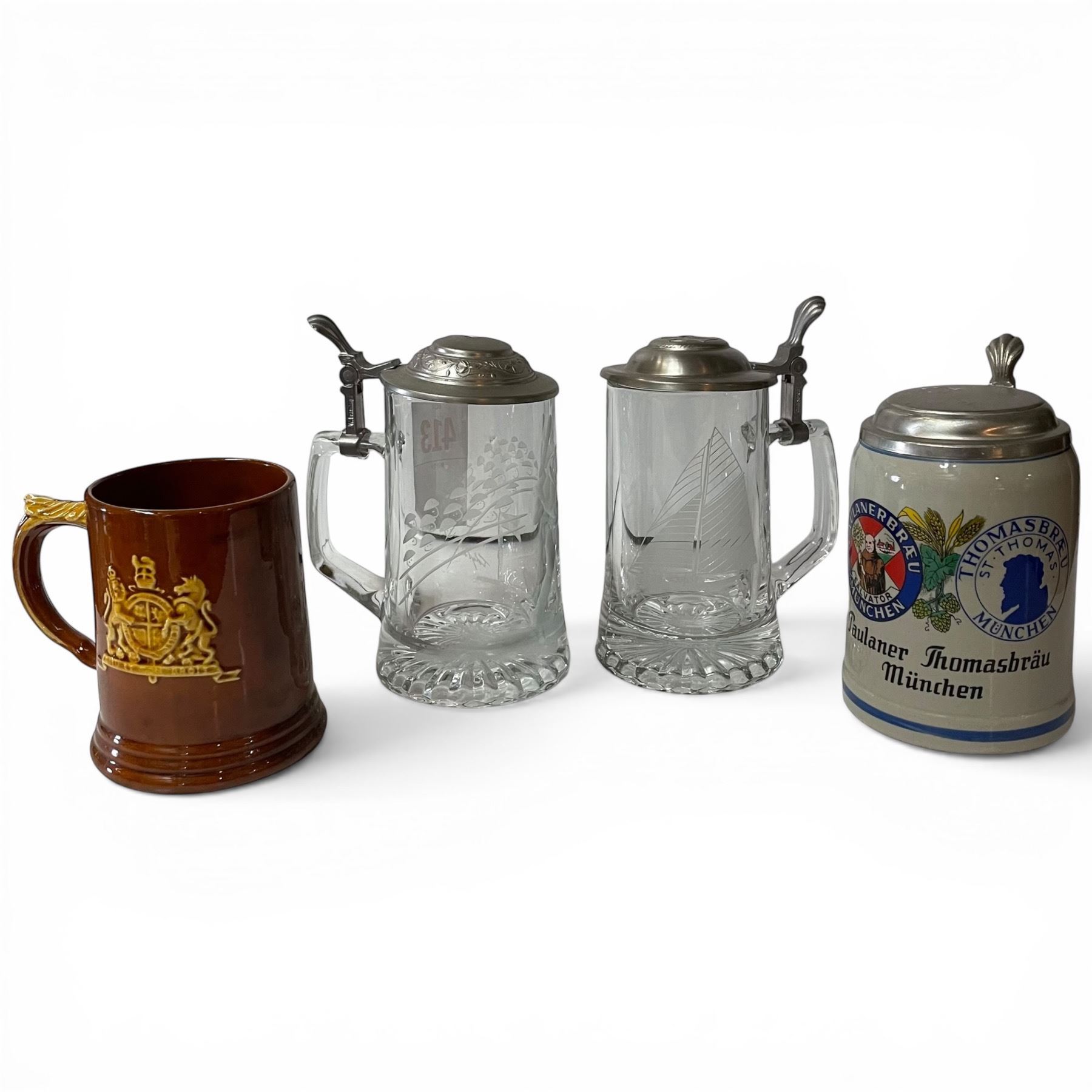 Lot 205 3 Steins & 1 Pottery Tankard (2 of the Steins are Etched Crystal)