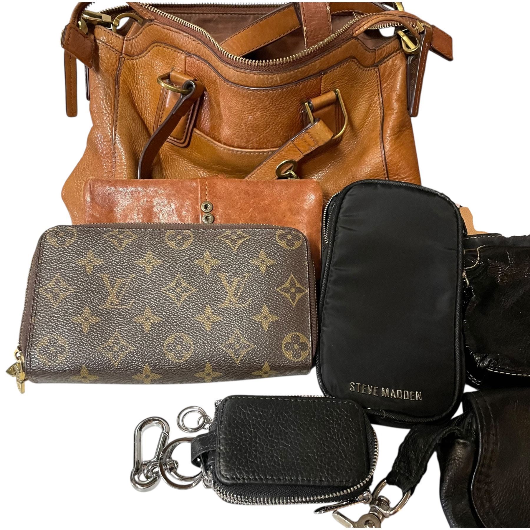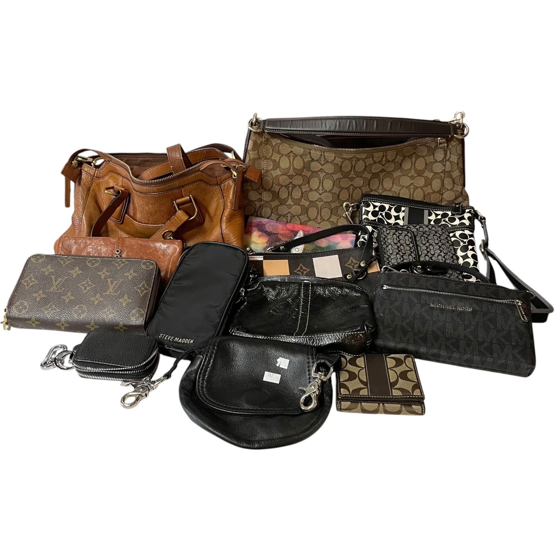 Lot 230 Large Group of Purses and Wallets * Coach, Steve Madden, Michael Kors, Luis Vuitton Replicas * Fossi