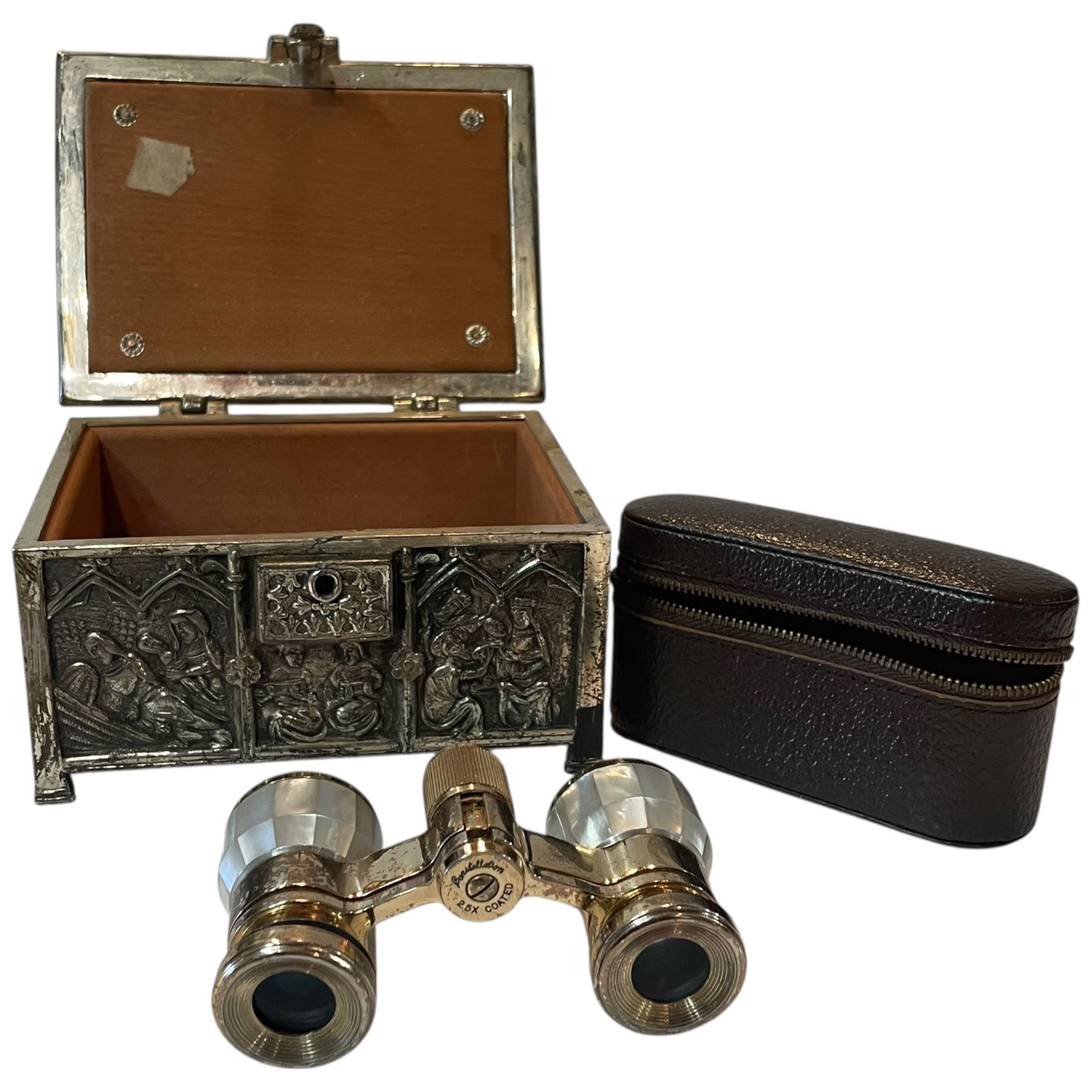 Lot 297 Japanese Mother of Pearl Opera Glasses with Case in a Metal Keepsake Box