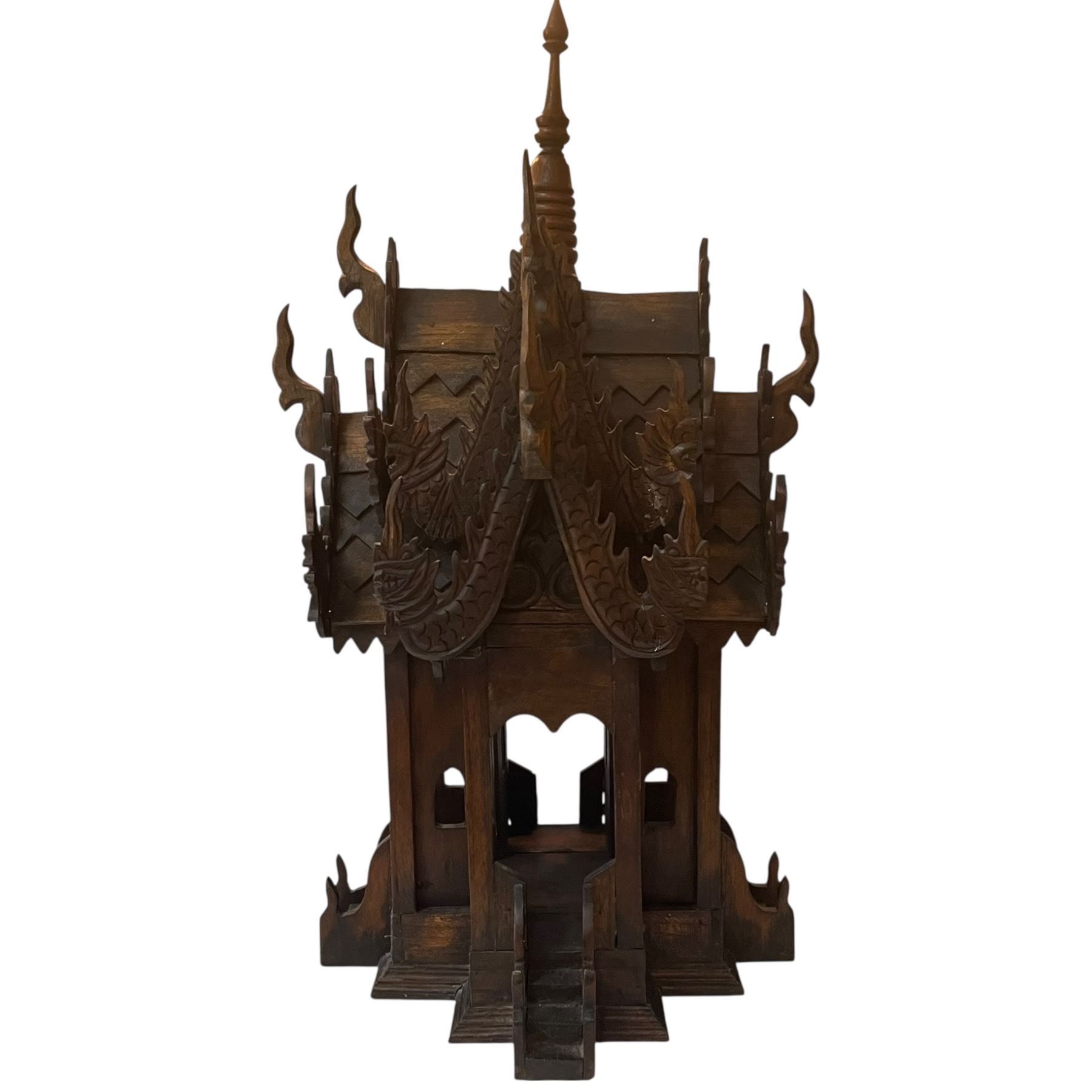 Carved Wood Thai Spirit House "Replica of a Buddhist Temple" (" 13 x 13" x 26" tall)