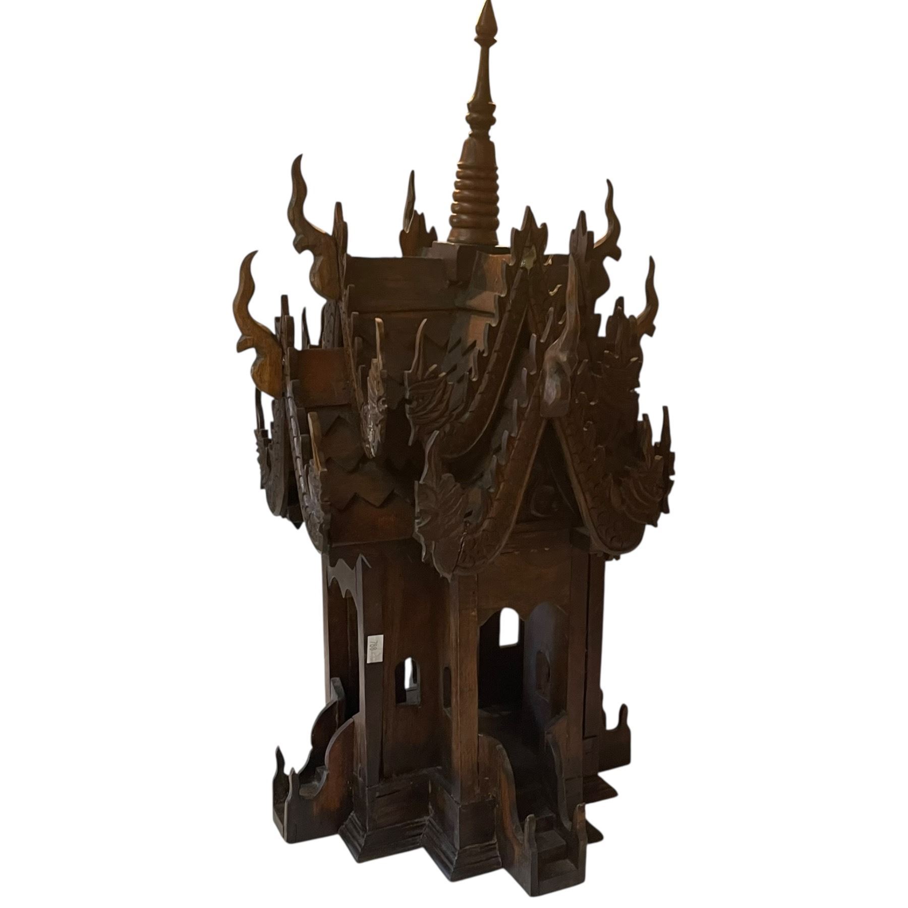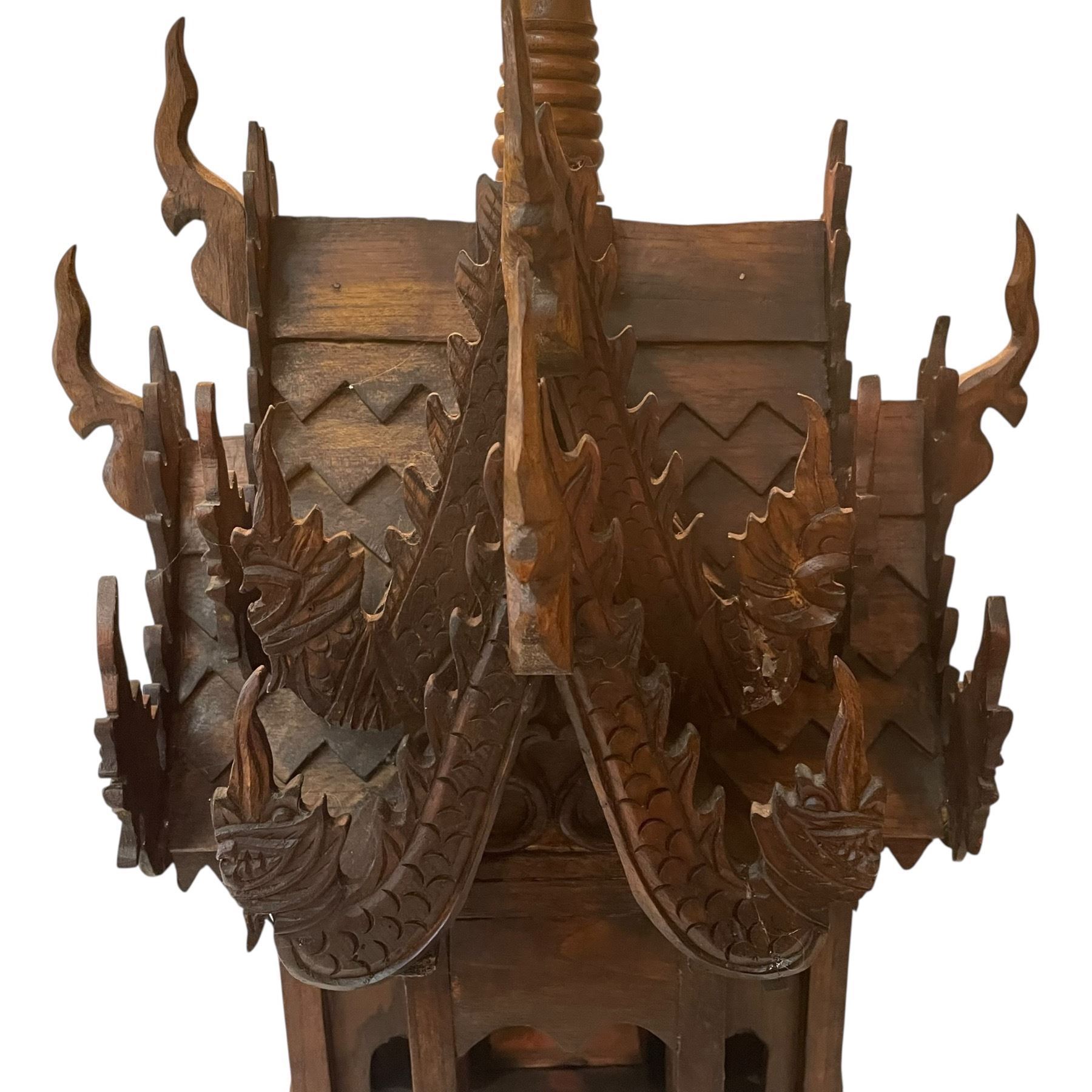 Lot 305 Carved Wood Thai Spirit House "Replica of a Buddhist Temple" (" 13 x 13" x 26" tall)