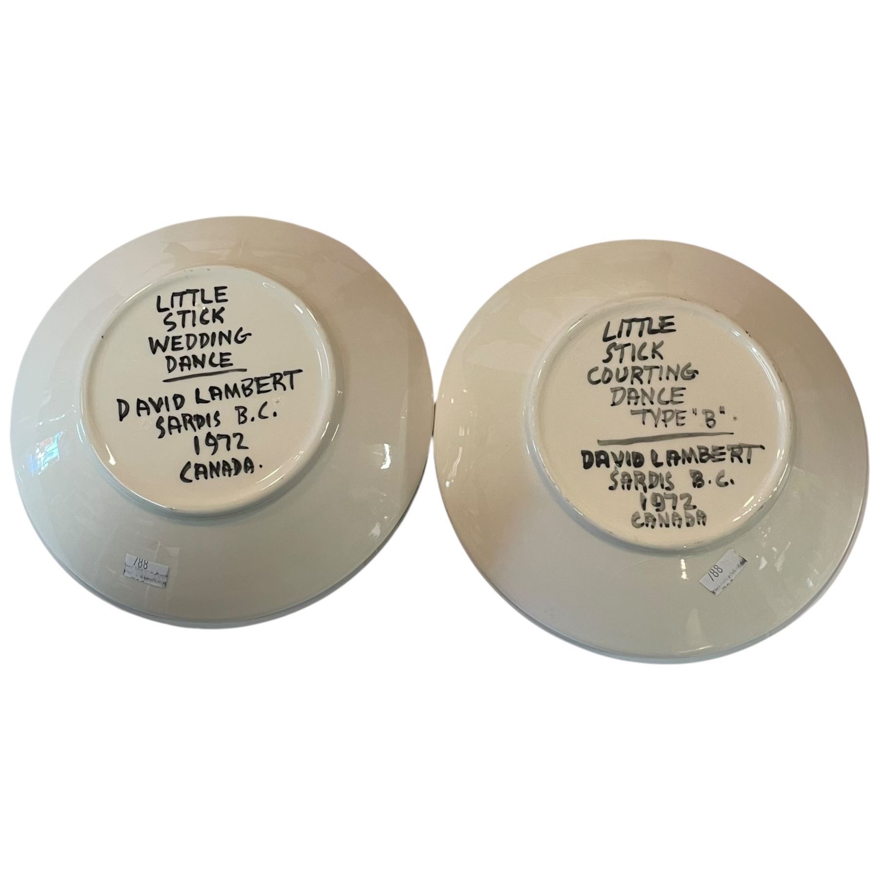 Lot 306 Pair of 1972 David Lambert 8" Art Pottery Bowls "Little Stick Courting Dance & Little Stick Wedding