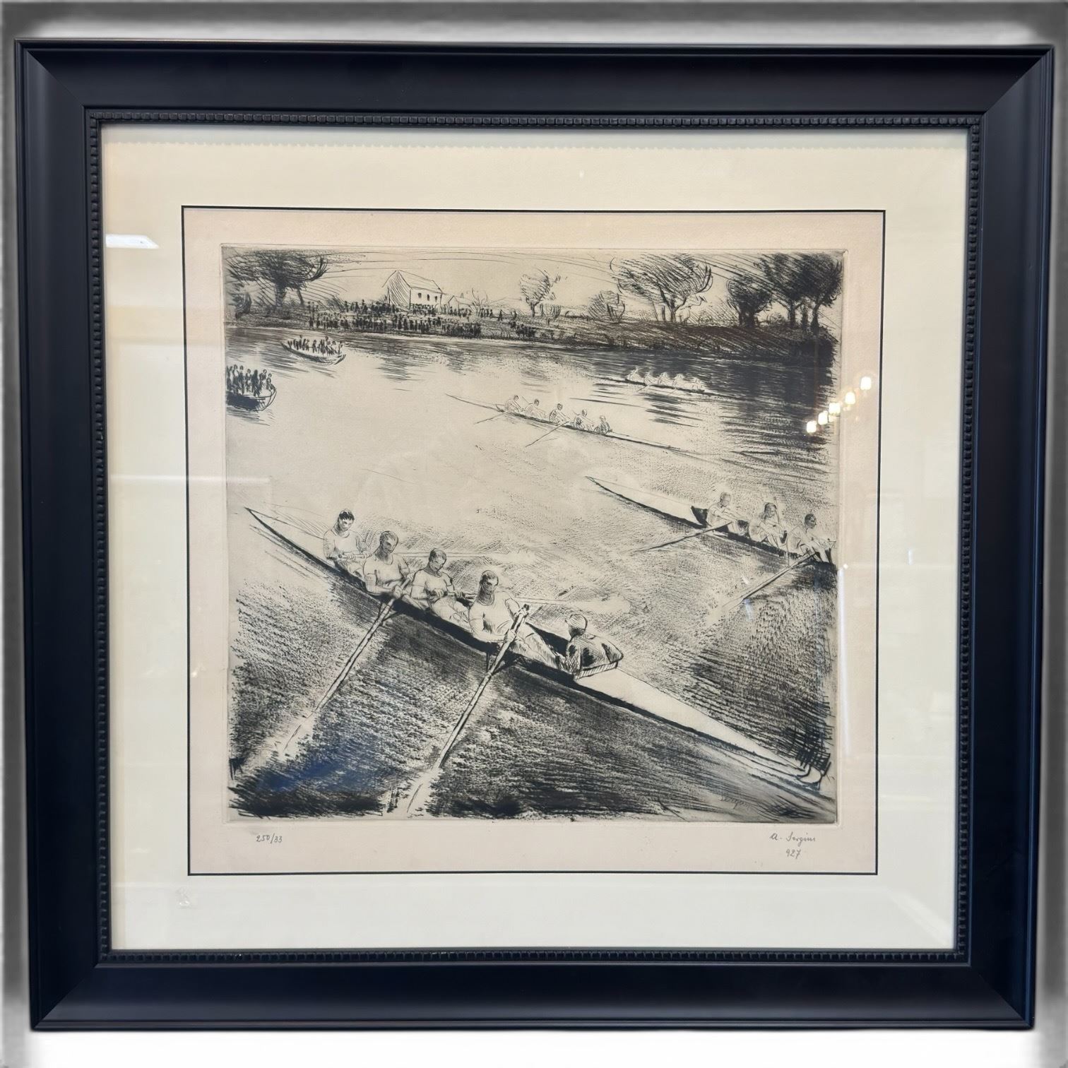 Lot 370 Vintage Ltd. Edition Etching of Rowers #33/250 Signature is possible A. Sergini 927 (frame dimensi