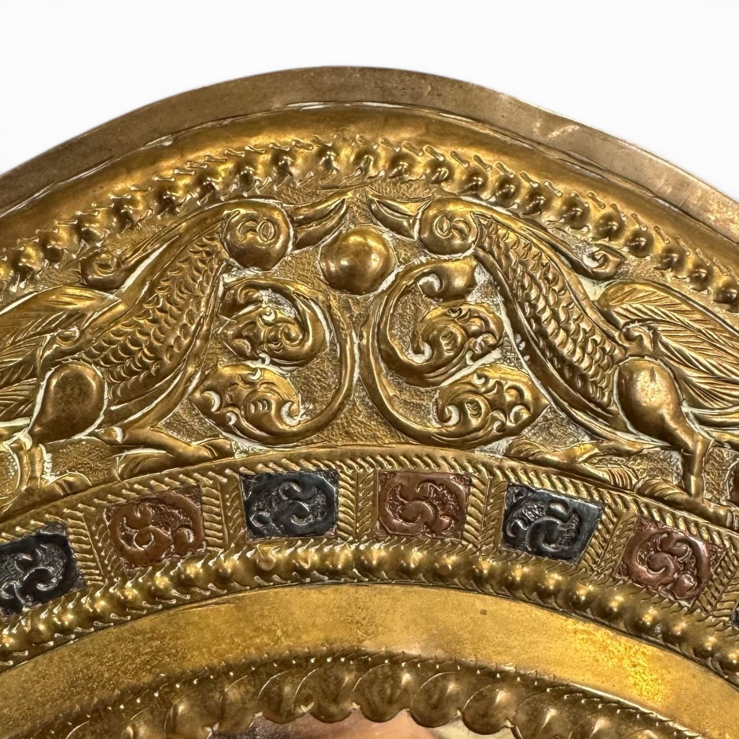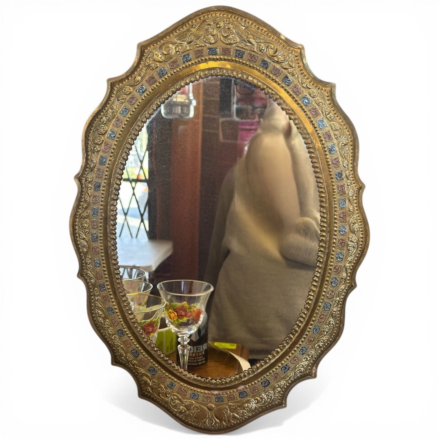 Lot 383 Oval Embossed Metal Wall Mirror (14" wide x 19" tall)