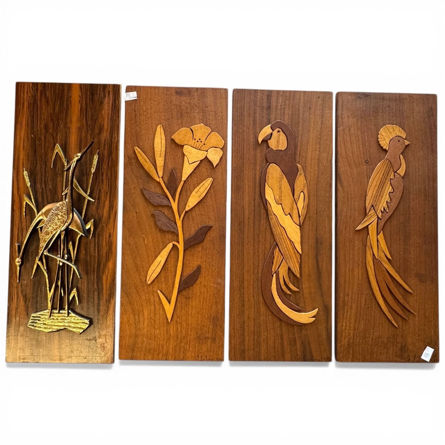 Lot 393 4 Mid-Century Wall Plaques * One will applied metal cranes *(Each wall plaque is: 6" x 16")