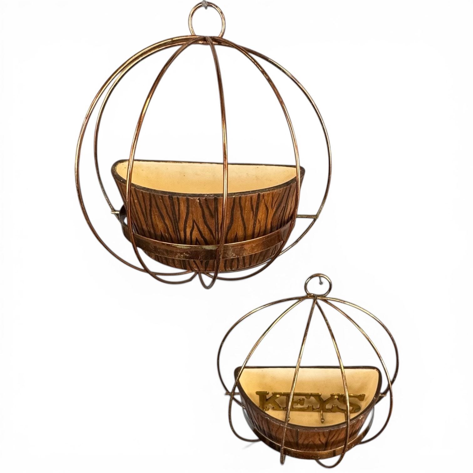 Lot 395 1958 Treasure Craft, California Ceramic Wall Planters in Metal Cages * 10" diameter